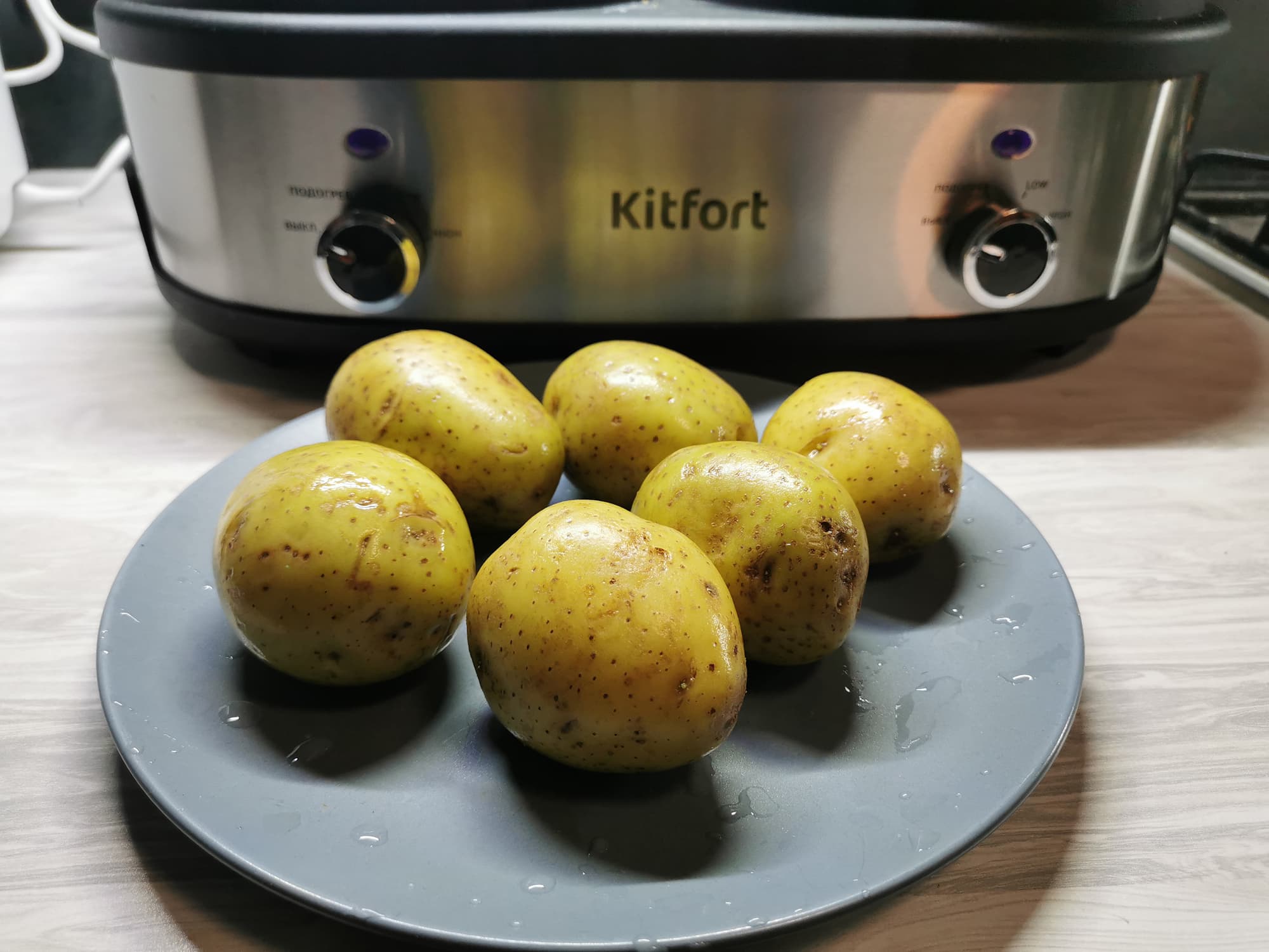 За 4,5 часа картофель стал мягким и душистым, а картофельная шкурка счищалась с него без труда.