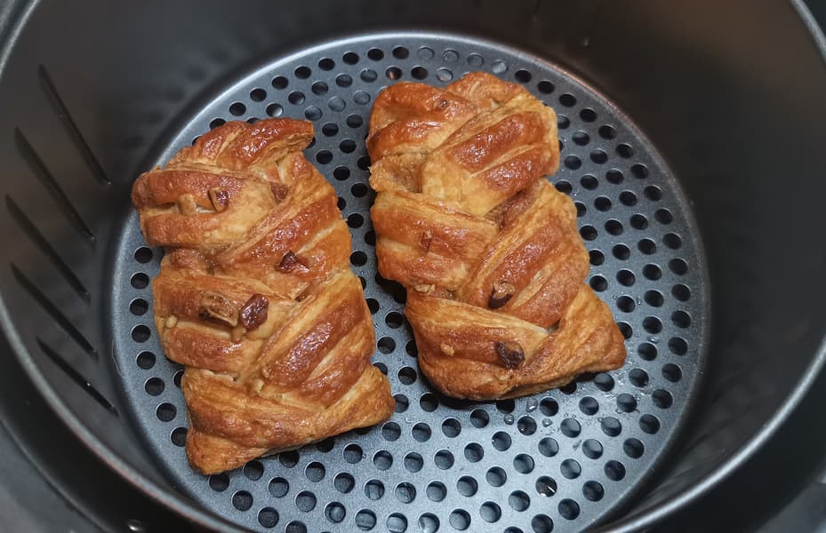 Мы взяли замороженную выпечку, в данном случае косичку с пеканом, и готовили в аэрогриле на 190 °C в течение 25 минут.
