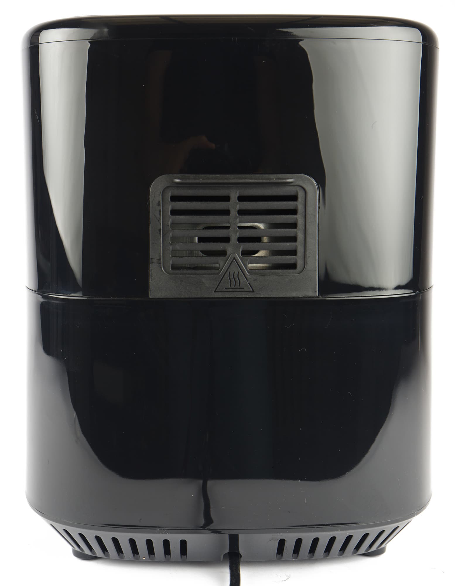 Сзади прибор полностью черный, пластиковый с вентиляционной решеткой и выходом шнура питания снизу.