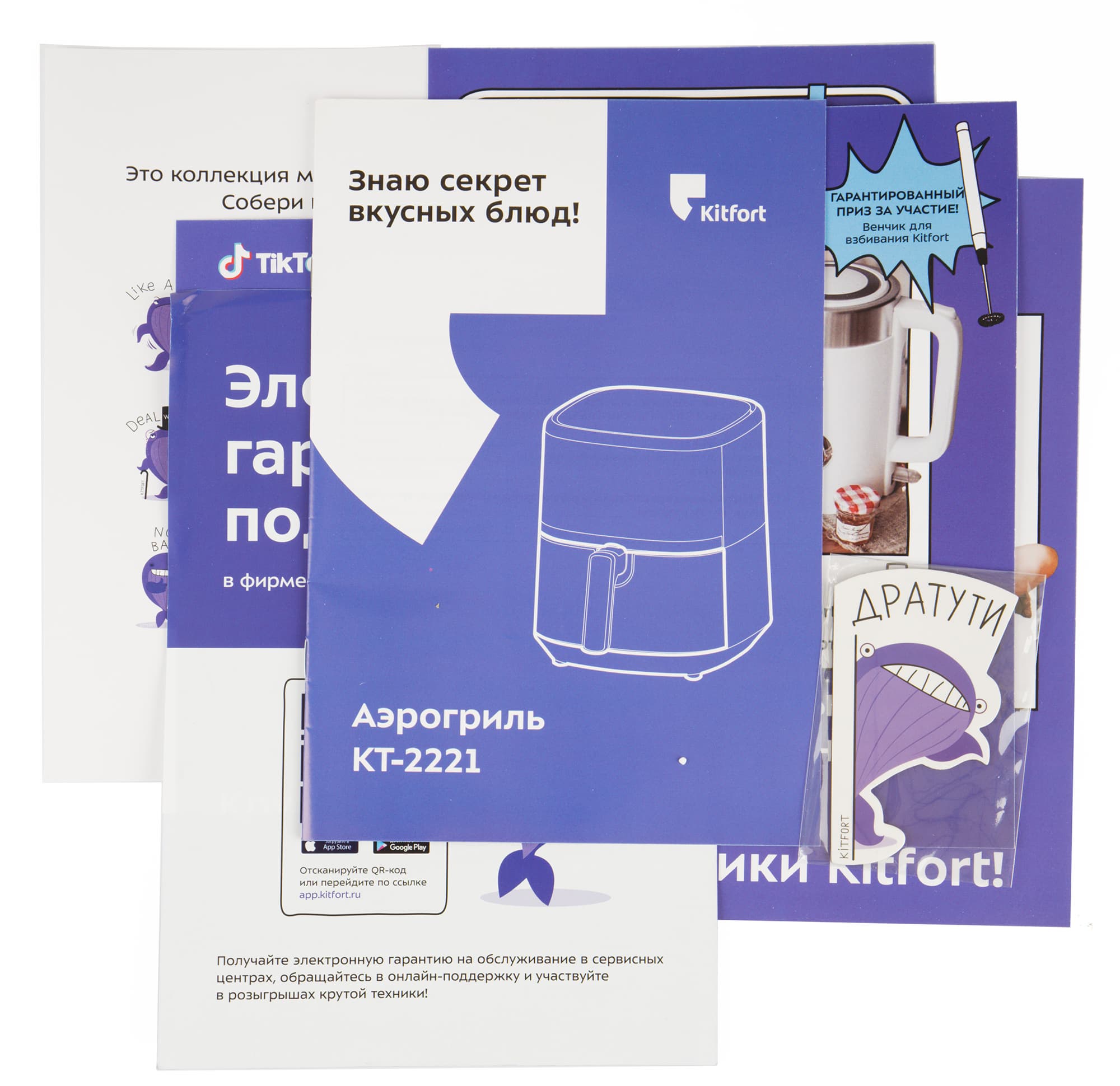 Аэрогриль Kitfort КТ-2221 — компактный современный бытовой прибор, который при определенных навыках хозяйки способен заменить на кухне духовку, гриль и мультиварку. Со своими же обычными задачами — сделать курицу- или рыбу-гриль, картошку-фри без масла или печеные овощи, выпечь пару круассанов или запечь яблоки — прибор справляется просто отлично.
