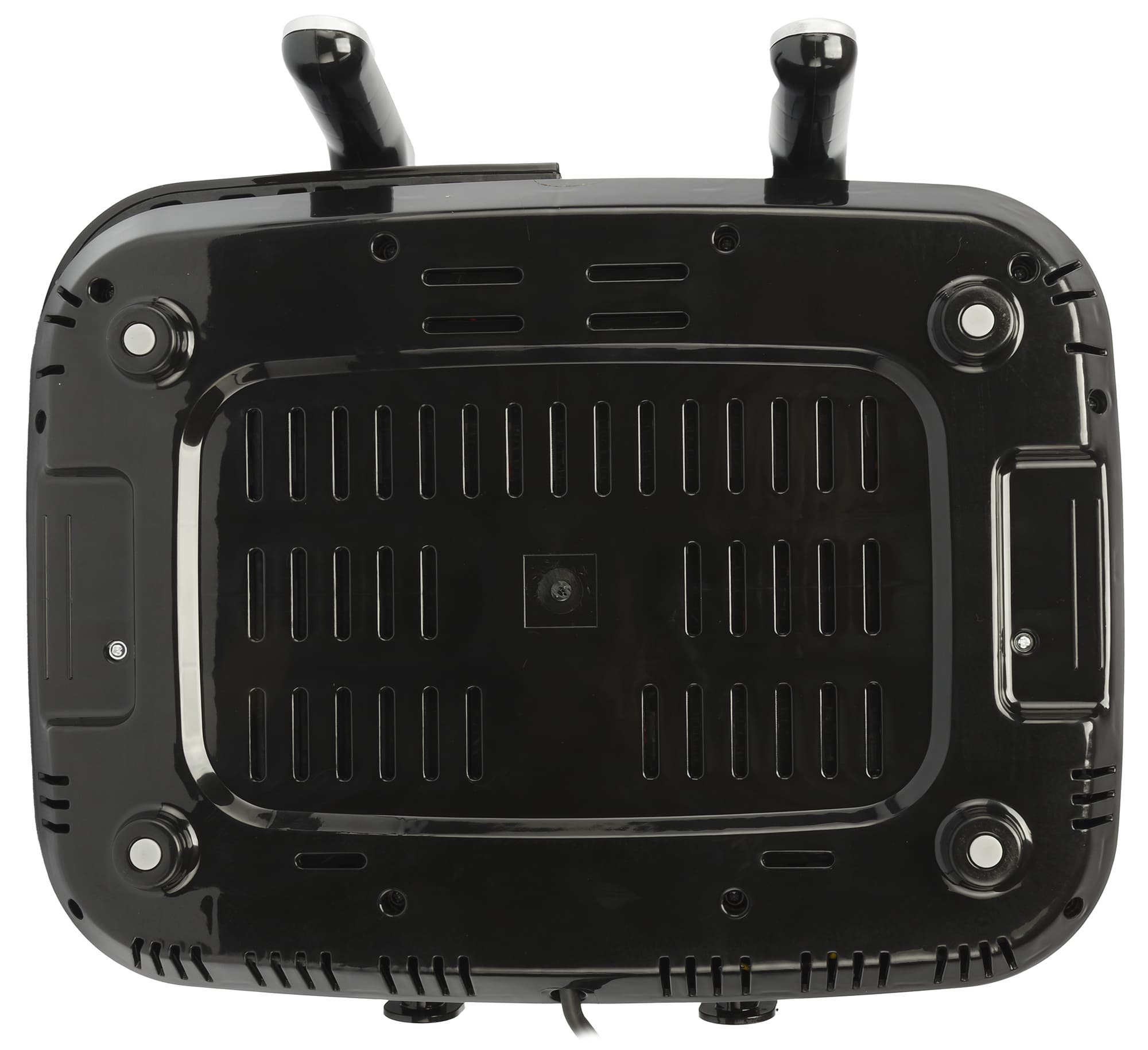 Аэрогриль имеет четыре небольшие прорезиненные ножки. Наклейка с серийным номером и основными характеристиками находится снизу.