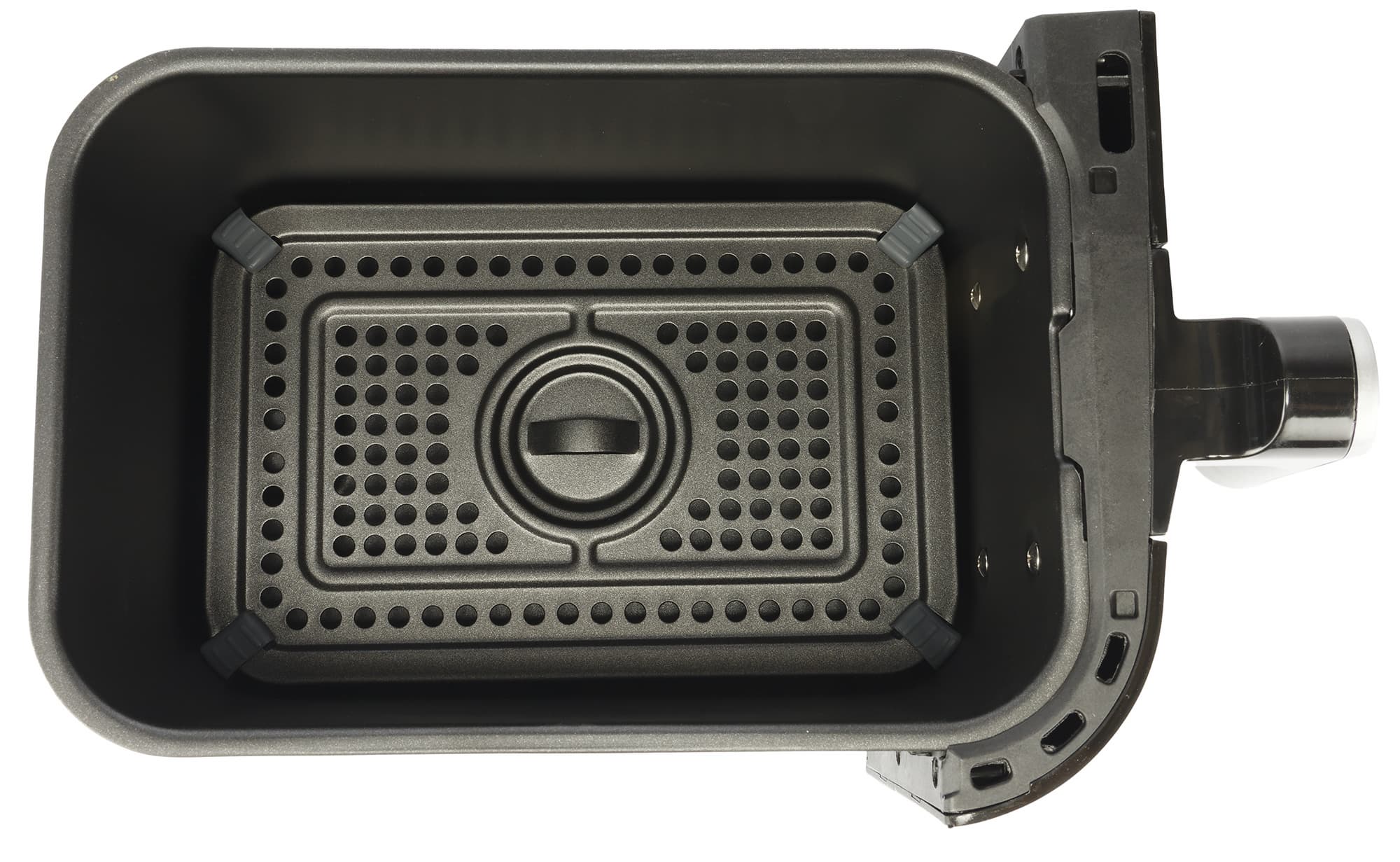 В поддон вставляется решетка для стекания лишнего масла и циркуляции горячего воздуха. Она представляет собой металлическую пластину с перфорацией и антипригарным покрытием.