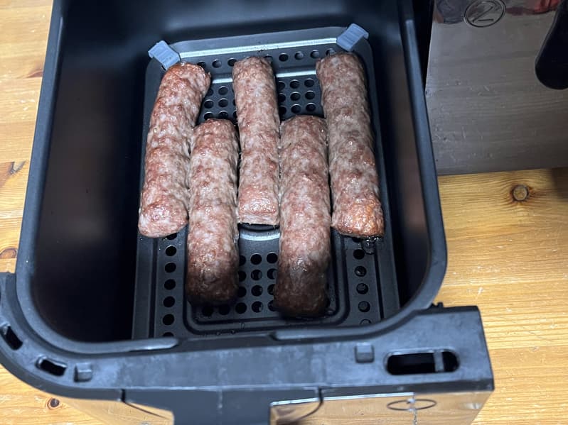 Колбаски, которые так отлично готовятся на открытом огне, но не впечатляют при простой обжарке на сковороде, должны получаться вкусными и сочными в аэрогриле.