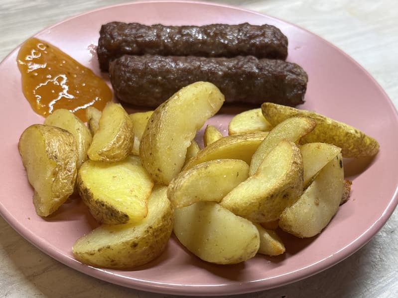 В эксплуатации аэрогриль несомненно порадовал. Результат был почти всегда чуть лучше ожидаемого, что приятно. Куриные голени готовились прекрасно, получились зажаристыми снаружи и сочными, нежными внутри. Готовку чевапчичей и картофеля мы попросту не заметили, так быстро и легко это произошло. А пирожки, в которые мы вместо теста положили творог и сыр, получились румяными с добавлением совсем небольшого количества масла и совсем не подгорели.