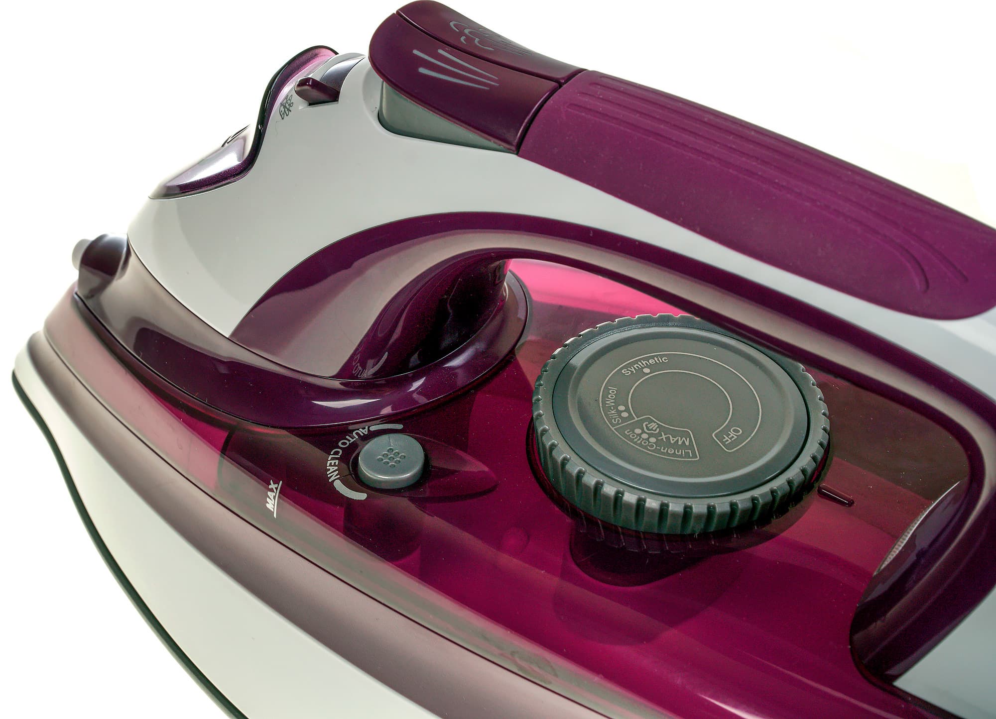 Регулятор подачи пара несколько необычен — мощность устанавливается плавно от глажения без пара до максимальной подачи.