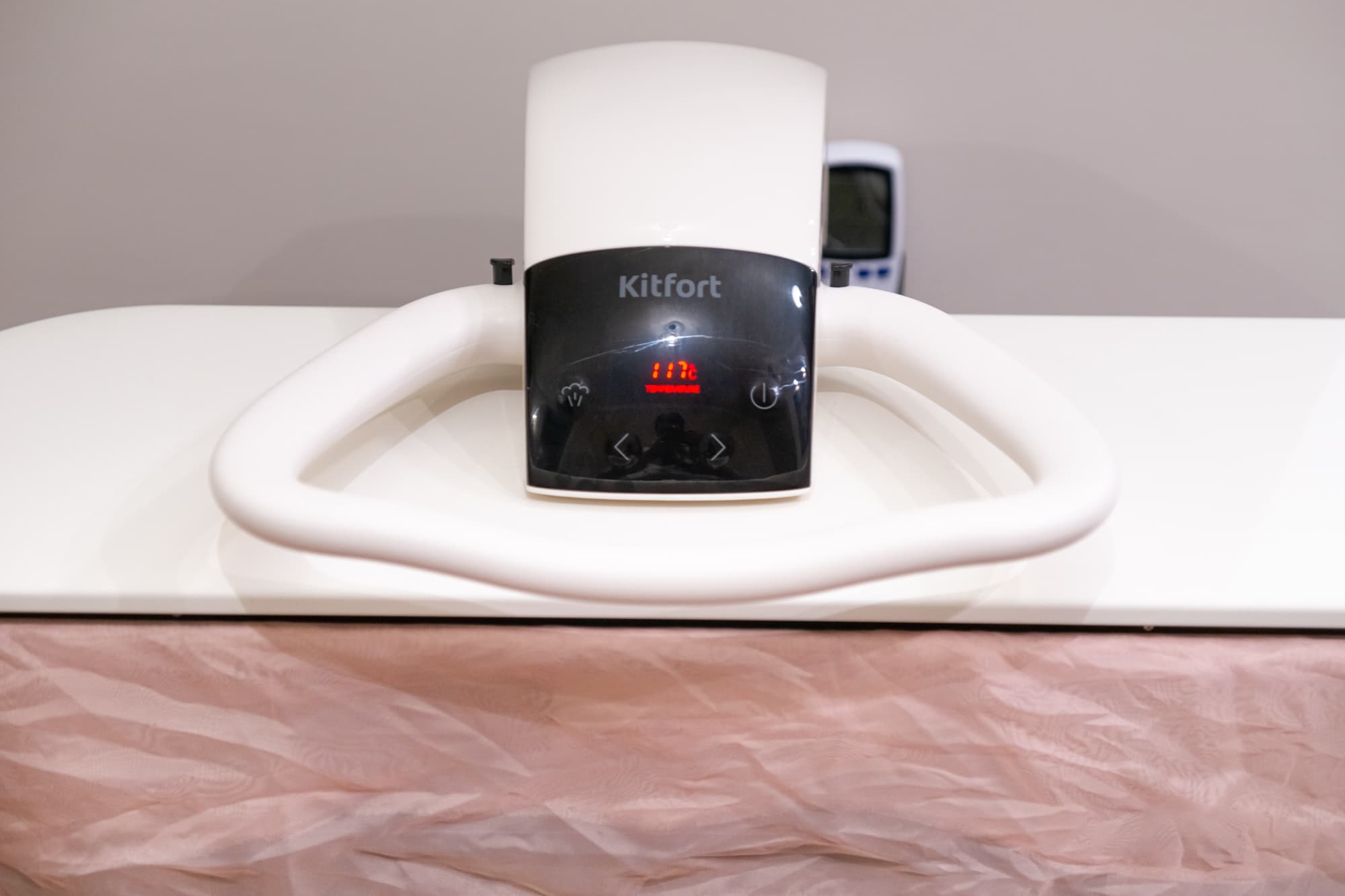 Гладильный пресс Kitfort KT-2607, о котором пойдет речь в этом обзоре, объединяет в себе функции трех приборов: утюга, гладильной доски и парогенератора.
