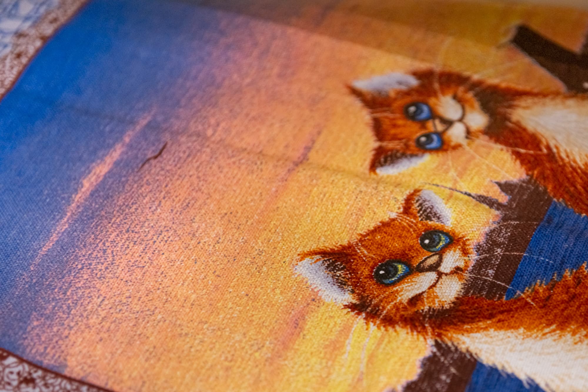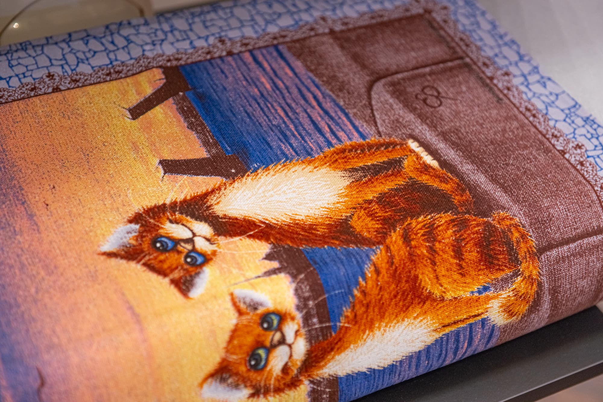 Полотенца долго лежали в шкафу в сложенном виде и имели характерные заломы, обычно трудно поддающиеся разглаживанию. Для того чтобы избавиться от них, нам понадобилось ровно два прижимания панелью, нагретой до максимальной температуры с предварительной подачей пара. Складок не осталось, краска на ткани не пострадала.