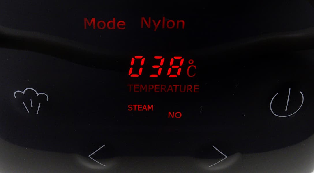 Когда пресс соприкасается с нижней панелью, ткань, обработанная паром, подсыхает под воздействием температуры поверхности пресса и разглаживается. Через 15 секунд после опускания верхней панели пресс подает звуковой сигнал — дольше держать панели закрытыми нельзя. Если проигнорировать сигнал и оставить панели в сомкнутом виде на большее время, пресс отключит нагрев. Оставленный в бездействии с раскрытыми панелями, пресс выключится самостоятельно через 10 минут. В обоих случаях на экране будет продолжать гореть уменьшающееся значение температуры.