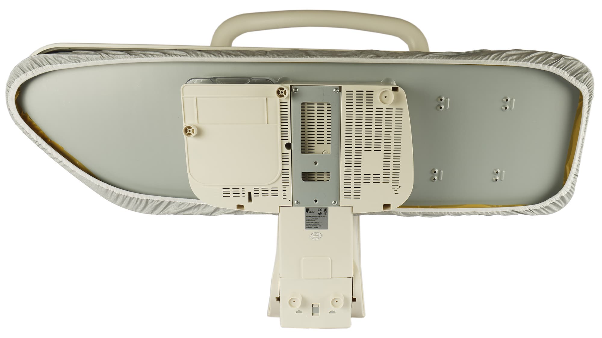 Нижняя рабочая панель — это гладильная доска. Она также металлическая. На ней закреплен поролоновый уплотнитель, а сверху надет съемный чехол из термостойкой ткани. Размер гладильной доски 99×28 см.