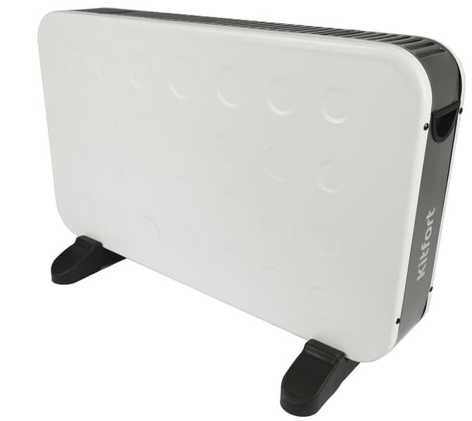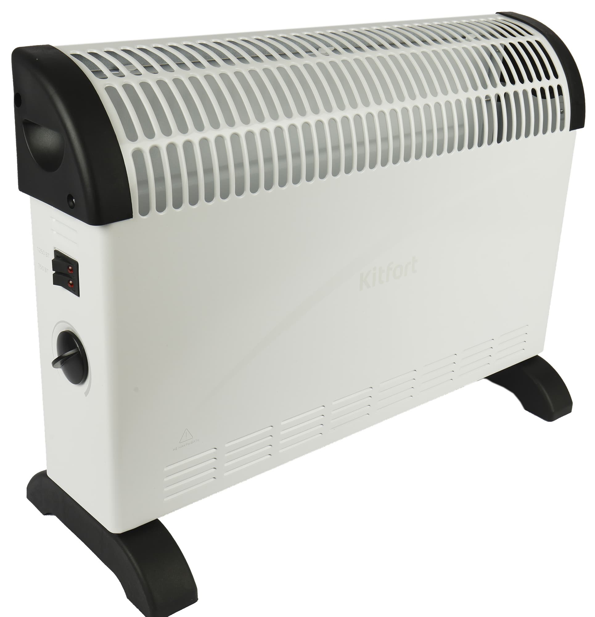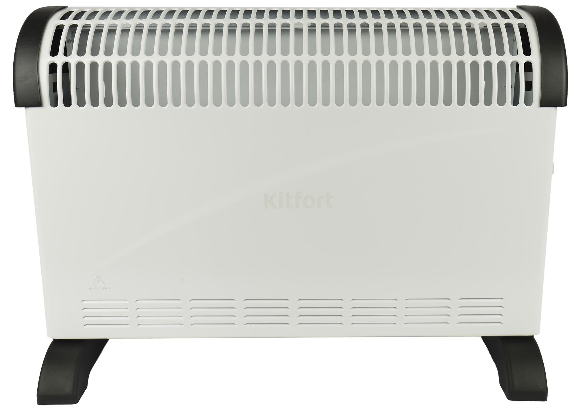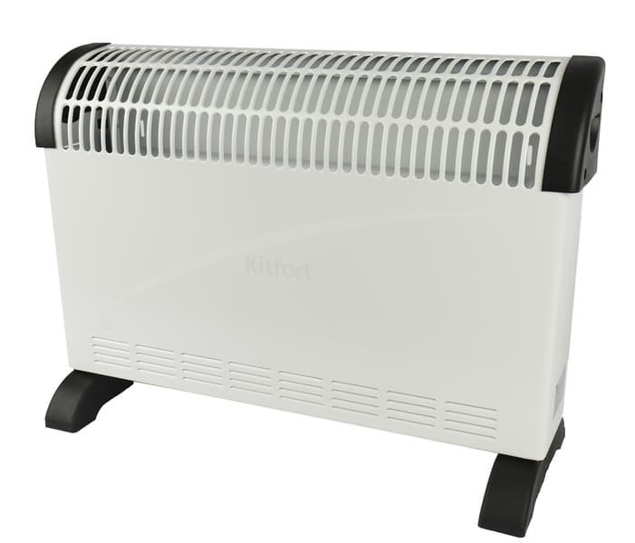 Наиболее мощный и быстро нагревающий обогреватель — KT-2703, его конвекционный поток хорошо прогревает воздух над прибором, но для равномерного нагрева требуется дополнительное перемешивание. Прибор имеет практически открытую спираль, поэтому не рекомендуется в помещениях с сильной пылью, влагой, животными или детьми без присмотра. Конвектор может быть установлен как на пол, так и на стену. Управление организовано удобно, но шнур прибора короткий.