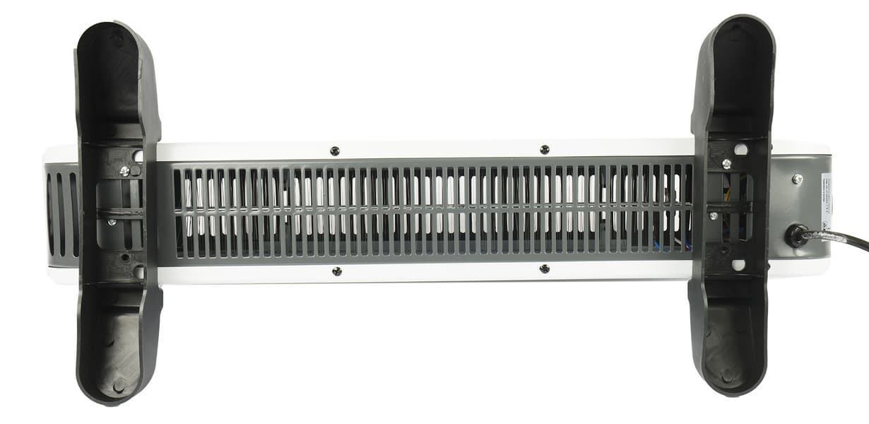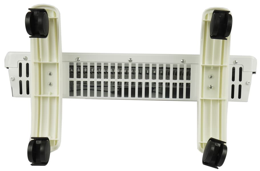 Прибор устойчиво стоит на поверхности. Снизу корпуса располагаются решетки, через которые осуществляется подача воздуха к спирали.