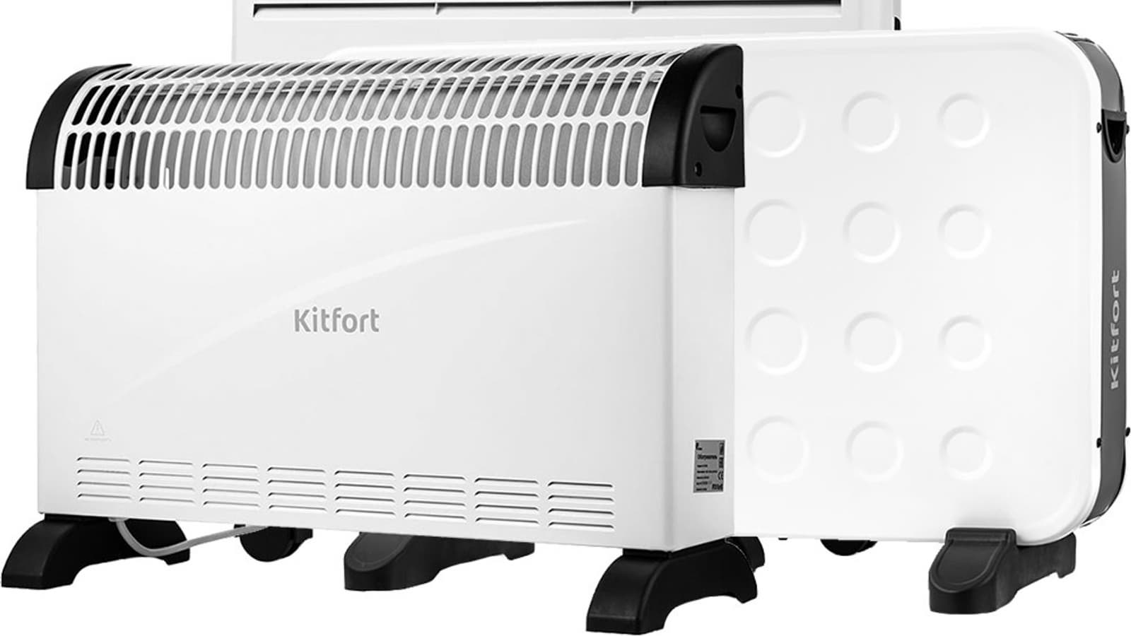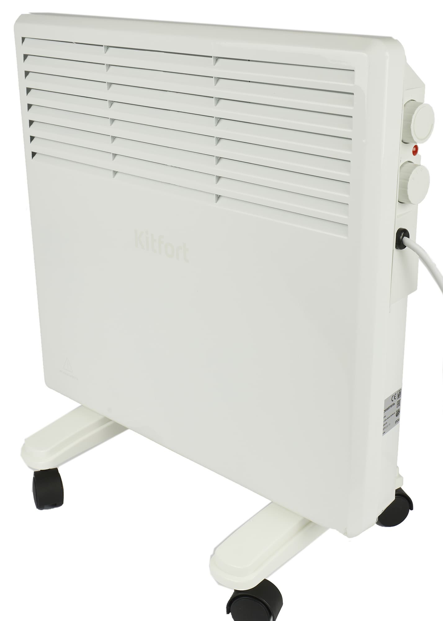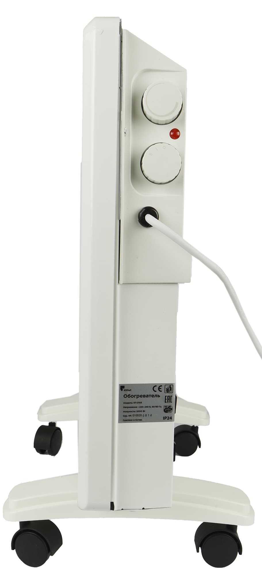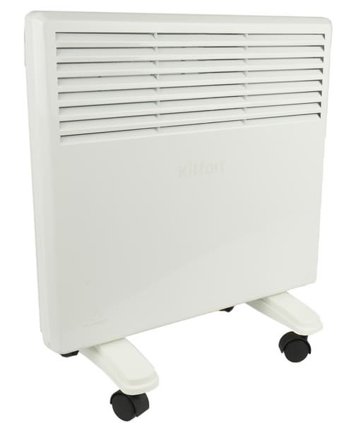 Электрический конвектор Kitfort KT-2705 небольшой плоский нагревательный прибор, способный отопить маленькое помещение самостоятельно или поднять температуру в большом помещении при одновременной работе с другим источником тепла. Электрический шнур конвектора средней длины, но расположен удобно, что добавляет несколько сантиметров. Реальная мощность прибора несколько ниже заявленной.