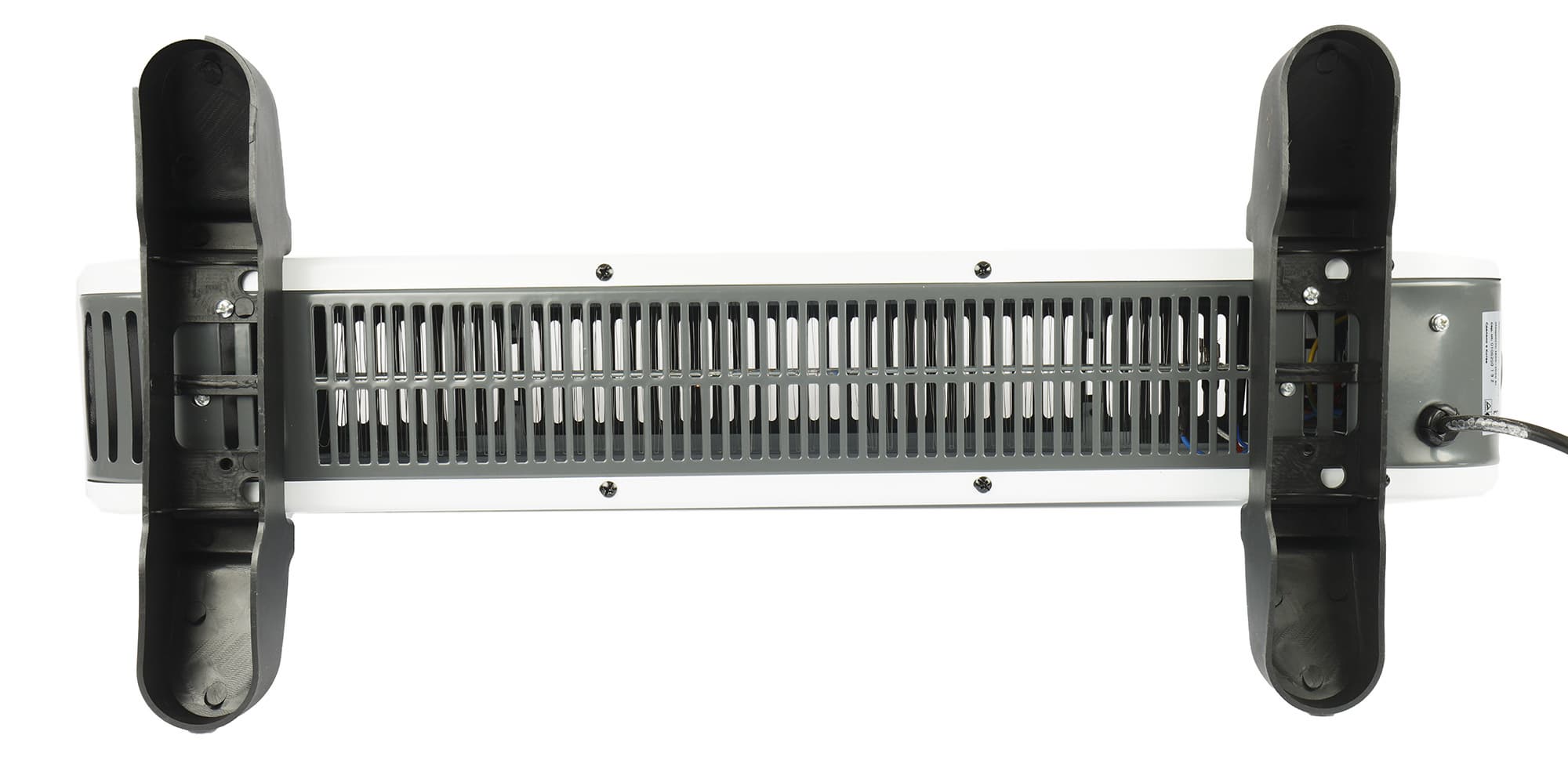 KT-2703 нагревает помещение достаточно равномерно, так как кроме конвекционного потока от спирали, тепло рассеивается с толстого металлического корпуса. Для данной модели возможна напольная и настенная установка. Защита IP24 делает возможным использование прибора во влажных помещениях при условии не допускания попадания жидкости внутрь и в органы управления.