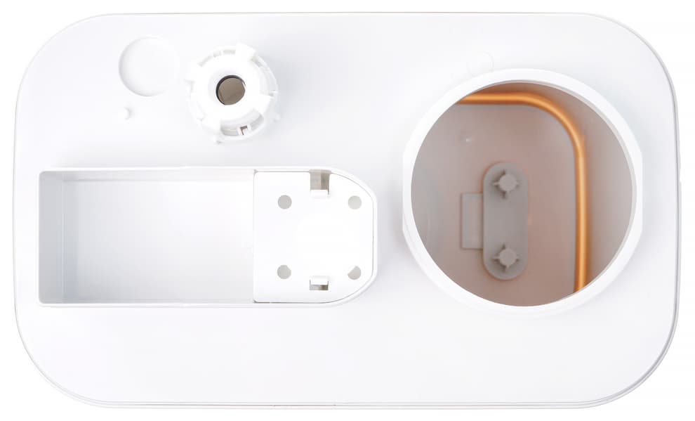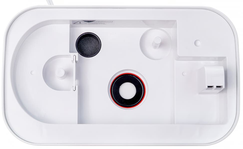 На ней видим только стык с резервуаром для воды и контур секции для эфирных масел: при надавливании выезжает ванночка с фильтром внутри.