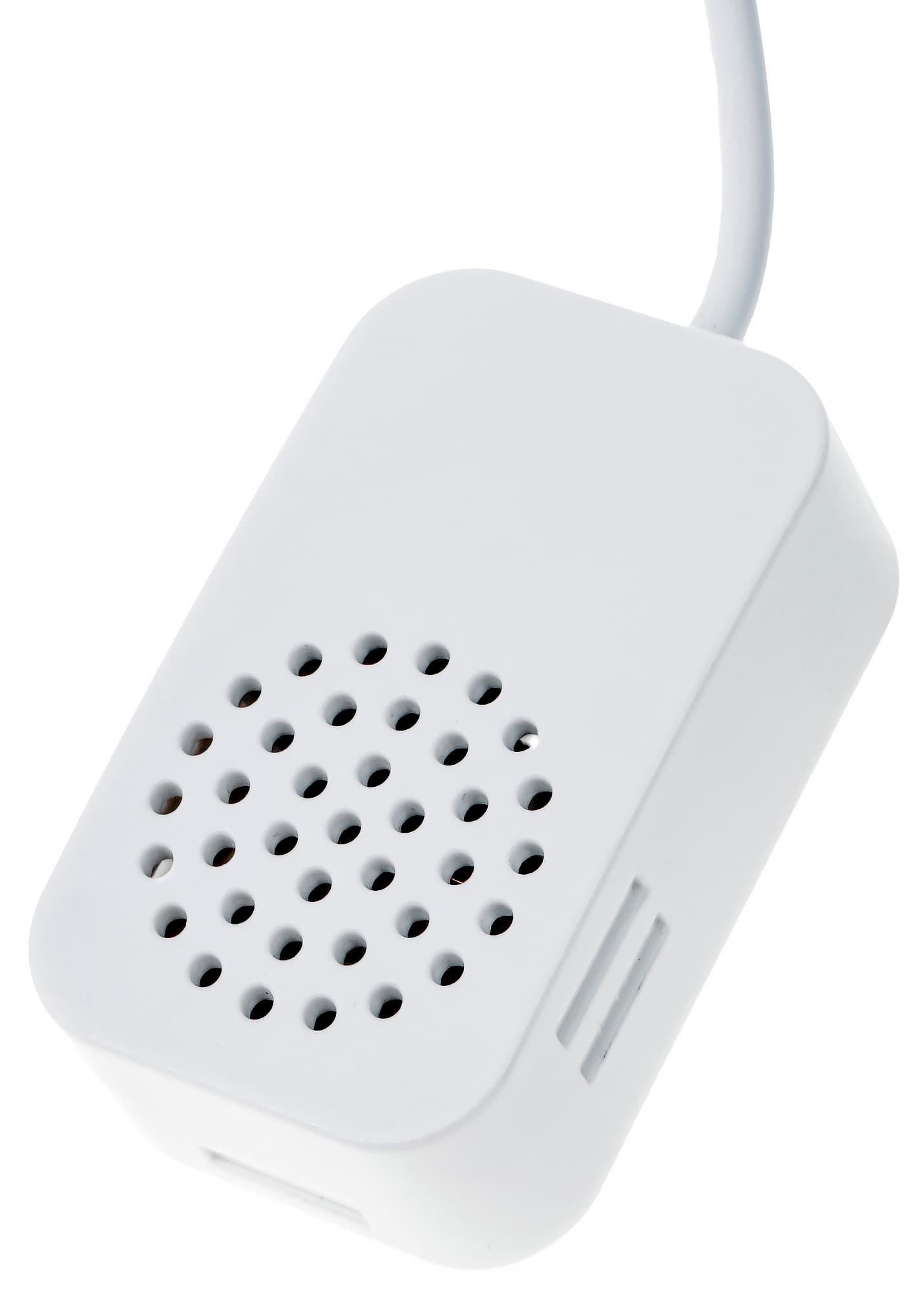 Электрический провод длиной 1,5 м, тоже белый, дополнительно снабжен гигрометром. Вынесение датчика за пределы корпуса позволяет улучшить точность измерений температуры и относительной влажности воздуха самим прибором, как показали наши тесты.