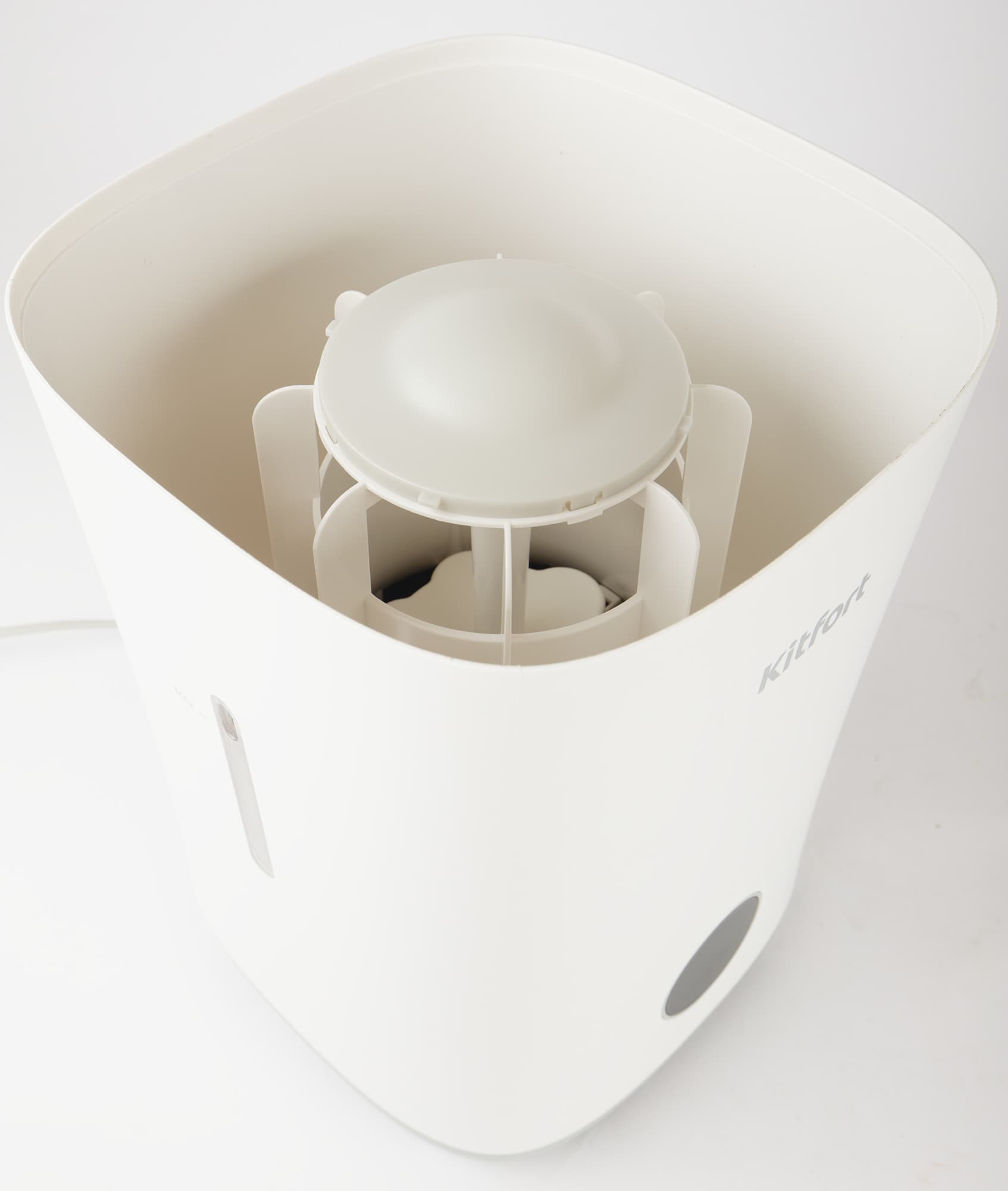 Под крышкой располагается рабочая емкость с увлажняющим фильтром цилиндрической формы. Фактура его стенок напоминает традиционные HEPA, но о классе фильтрации материала, использованного в приборе, производитель умалчивает.