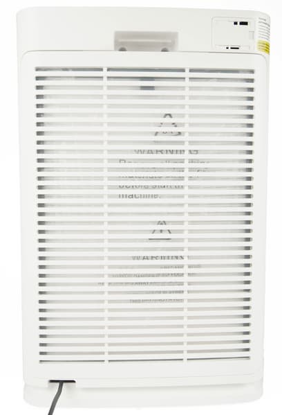 Черная выпускная решетка занимает всю верхнюю грань воздухоочистителя. Здесь же находится панель управления прибором — ее мы подробно рассмотрим чуть ниже.