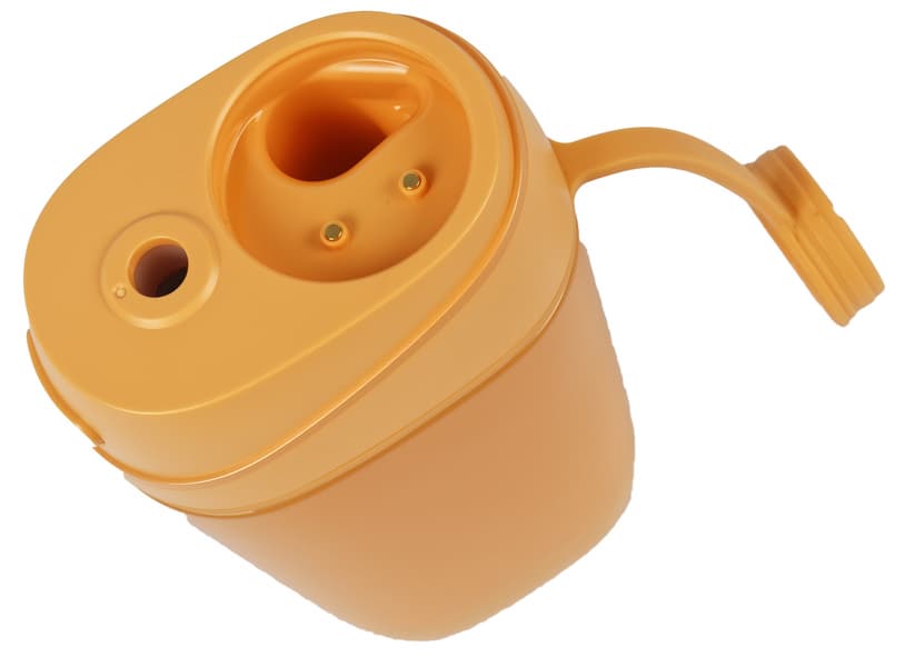 Первое, что бросается в глаза — устройство меньше всего напоминает стоматологический прибор, один из тех, что навевали ужас в детстве. Перед нами небольшой, удобный пенал корпуса, комфортно помещающийся в ладони, он одним скользящим движением выдвигается вверх, освобождая внизу емкость для воды. Гнездо для насадок располагается сверху, а рядом с ним прикрепленная резиновая, круглая заглушка открывает одновременно место для зарядки и наполнения резервуара жидкостью.