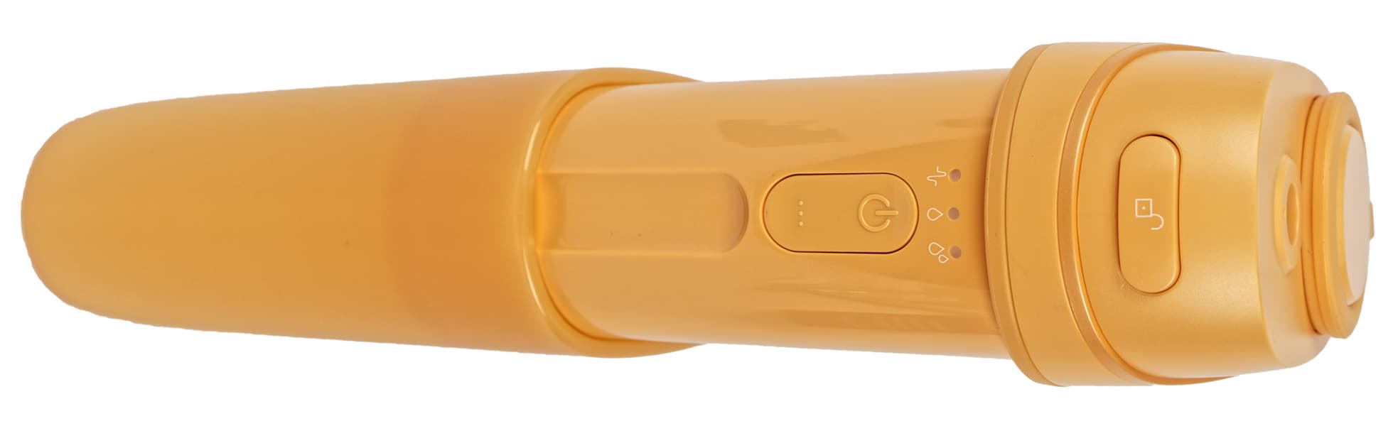 Перед началом работы раздвигаем корпус до характерного негромкого щелчка, вставляем насадку, заливаем жидкость. Ее объема, в зависимости от выбранного режима, хватает на 0,5-1,5 минуты интенсивной работы. Этого в среднем достаточно для полноценной профилактики. В случае необходимости более тщательной чистки, заново заполнить резервуар можно менее чем за 15 секунд. У прибора внутри литиевая батарейка, сам корпус водонепроницаем. Можно не волноваться, используя его в ванной комнате дома или в офисе, в дороге, в гостиничной душевой кабине. У ирригатора есть функция памяти, он включится сразу на последнем выбранном режиме.
