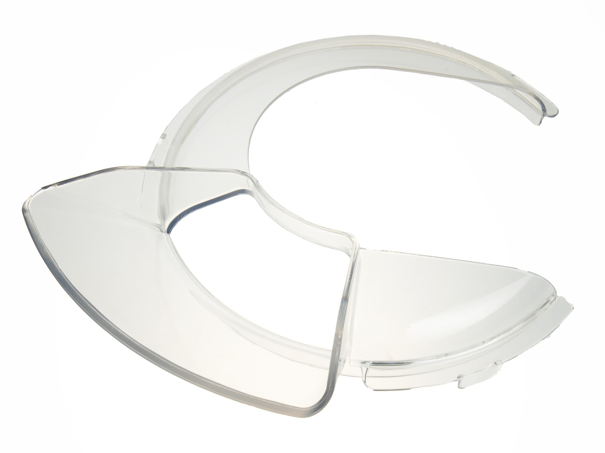Крышка чаши из прозрачного пластика, имеет широкое отверстие с высокими бортиками для добавления ингредиентов. Аксессуар предотвращает вылет брызг при работе миксера, защищая окружающие поверхности от загрязнений.