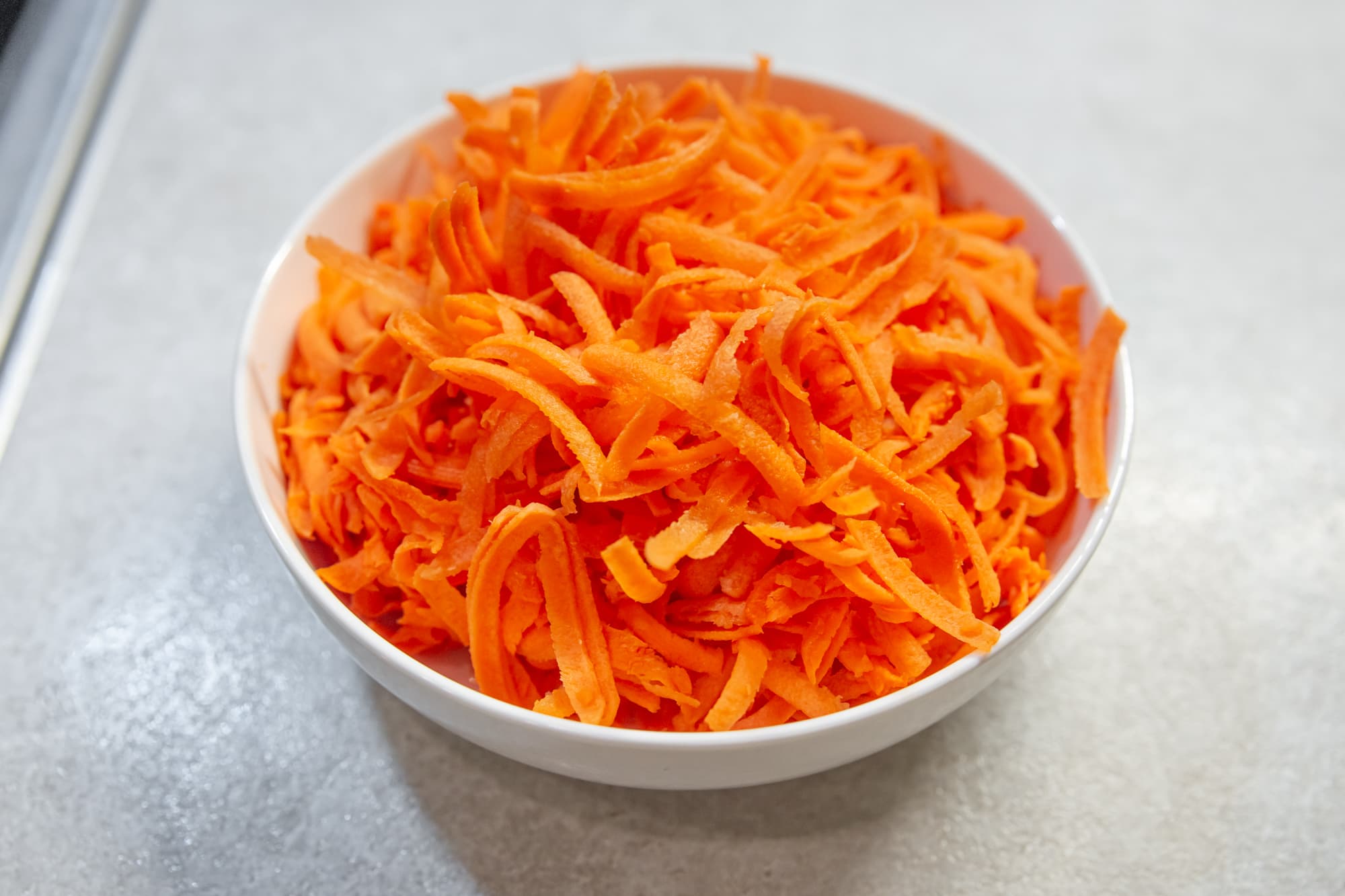 Овощи молниеносно превратились в идеальную по форме стружку. Ушло на это не больше минуты.