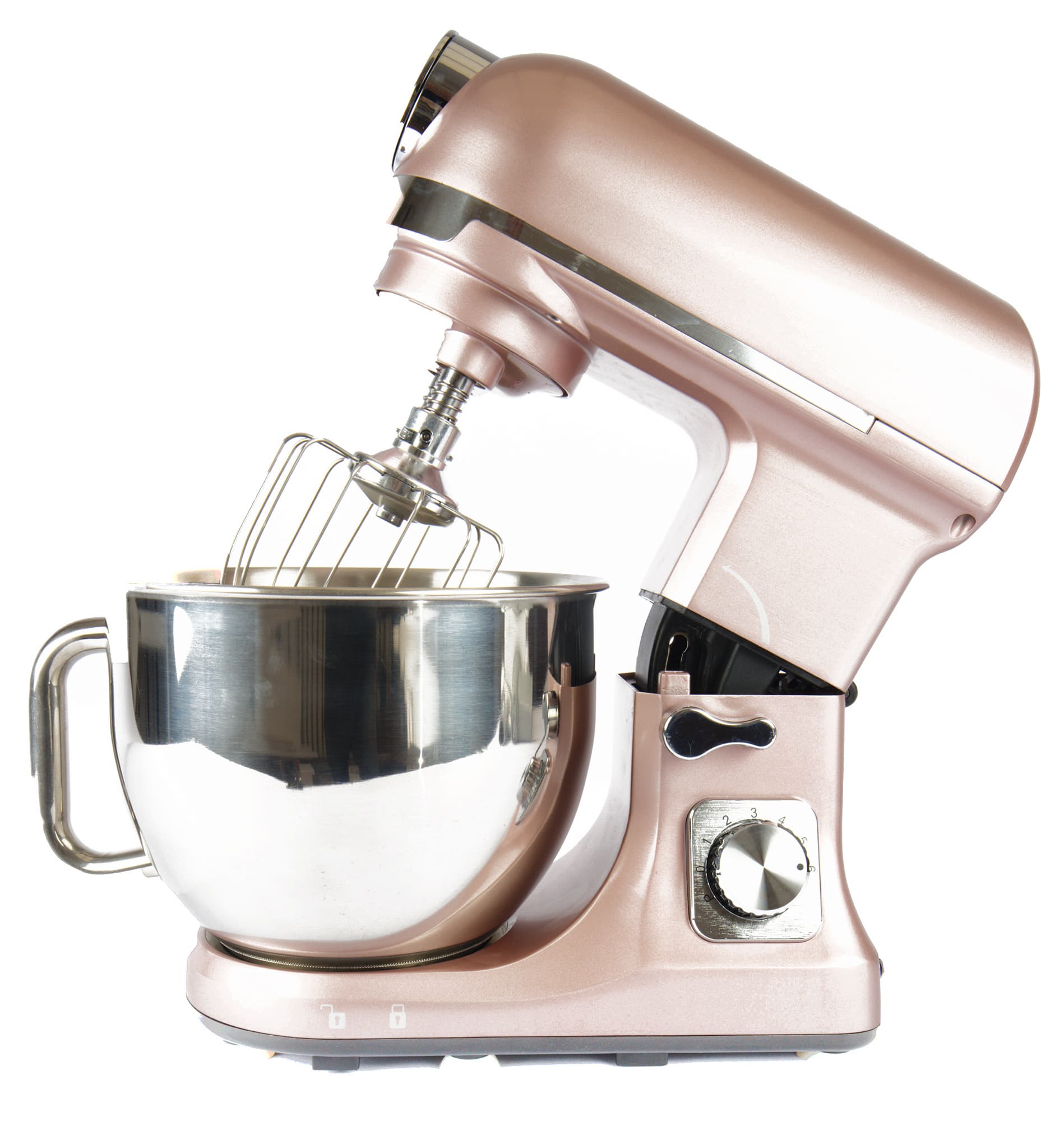 В процессе работы миксер устойчиво держался на столе, не двигаясь даже при работе на высоких скоростях. В момент замеса плотного теста корпус еле заметно вибрировал, а откидная часть слегка ходила вверх-вниз, но небольшой люфт в этой ситуации допустим.