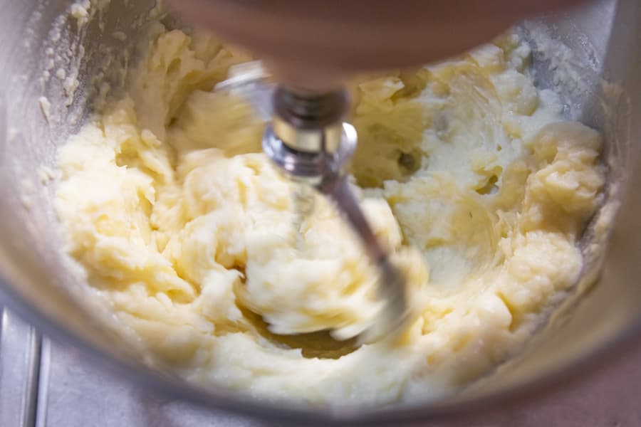 1,2 килограмма только что сваренного картофеля поместили в чашу с небольшим количеством сливочного масла. Присоединили насадку для смешивания и включили прибор на 1-ю скорость. Насадка вращалась медленно, как и требовалось при приготовлении пюре. Когда картофель размялся, добавили полтора стакана горячего молока.