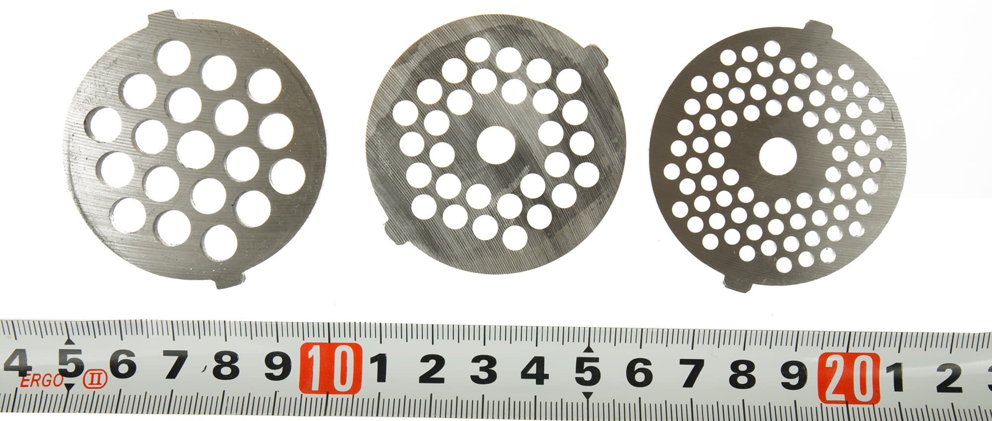Помимо этого, в комплекте идут дополнительные аксессуары: решетки с отверстиями трех размеров (3, 5 и 7 мм), насадки для приготовления колбасок и кеббе, а также насадки для макарон, спагетти, тальятелле и печений.