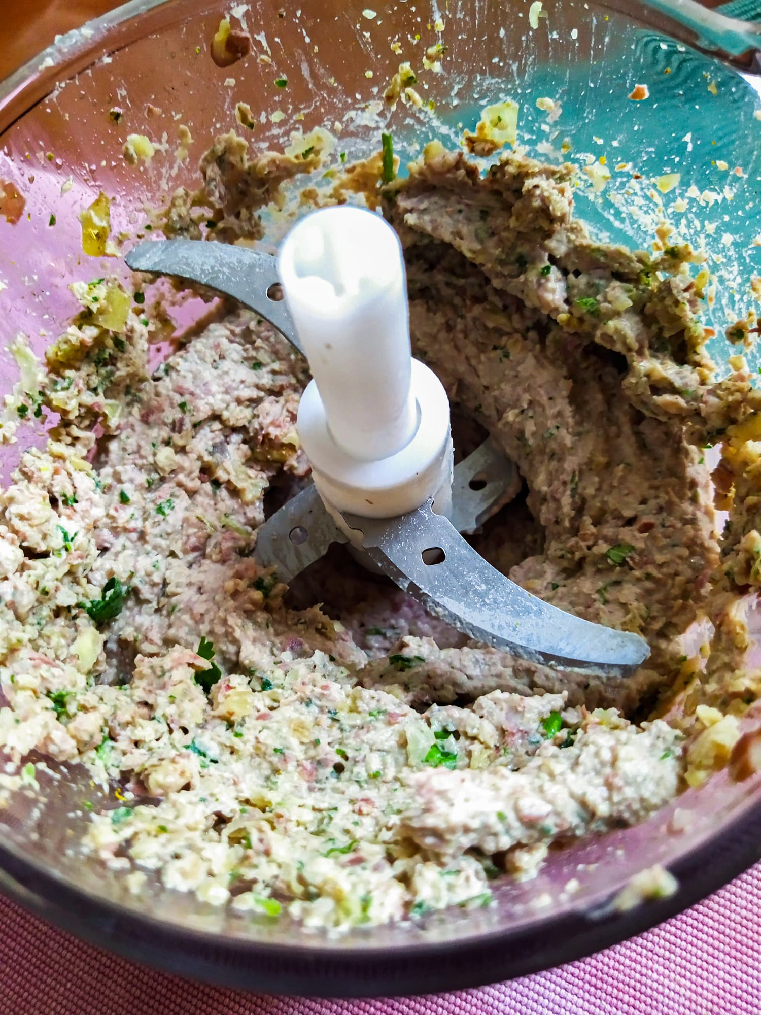 Начнем с лука. Две луковицы измельчали в общей сложности 10 секунд (пришлось один раз прерваться, чтобы сгрести поближе к ножам то, что осело на стенках чаши и на крышке.) Лук измельчен однородно, и даже у ножей нет кашицы, которая обычно появляется, пока ждешь, когда измельчатся верхние слои.