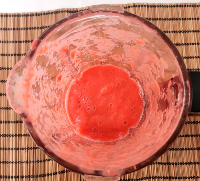 Наши надежды более, чем оправдались, и к моменту, когда блендер победно пикнул в завершении минуты, мы уже видели сквозь стекло чаши, что томаты чуть ли не собрались стать розовой пенкой.