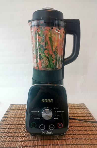 В этот раз мы рассмотрим новую модель блендера Kitfort. Главная особенность модели KT-3027, выделяющая ее в данной группе кухонных приборов — наличие подогрева. Ранее мы уже делали обзоры блендеров с этой удобной функцией, например на ум сразу приходит AirFree R9, однако нынешний образец будет попроще предшественника, без наворотов, вроде вакууматора, зато и дешевле более чем в 3 раза. В Kitfort KT-3027 встроены 8 автоматических программ, в том числе «Суп-пюре» и «Каша», способные приготовить блюда, а не только измельчить их.