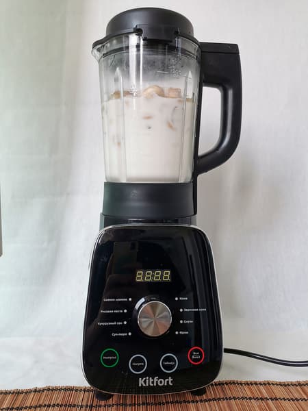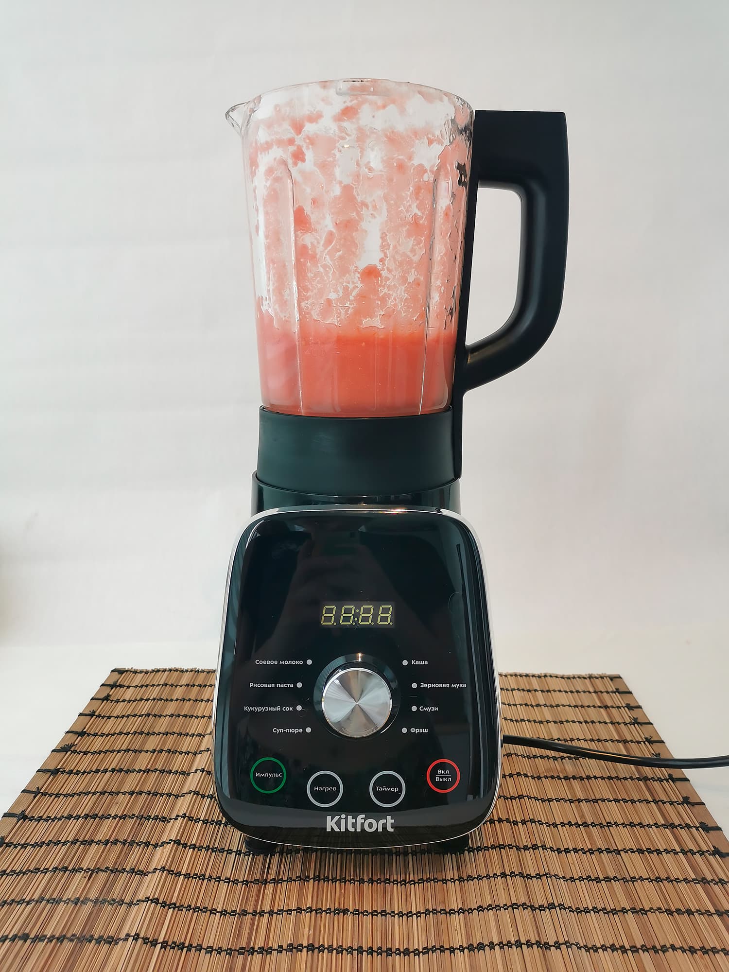 Нашей целью было понять насколько удобен блендер с подогревом, может ли он заменить собой, скажем, мультиварку и освободить дополнительное место на кухне. Также для своей комфортной ценовой категории, данный прибор неожиданно заявлен как прекрасный измельчитель зерен в муку. Более того: производитель даже предлагает использовать блендер не только на домашней кухне, но и в небольшом кафе, поэтому нам хотелось проверить реальные возможности аппарата на деле и дать им непредвзятую оценку.