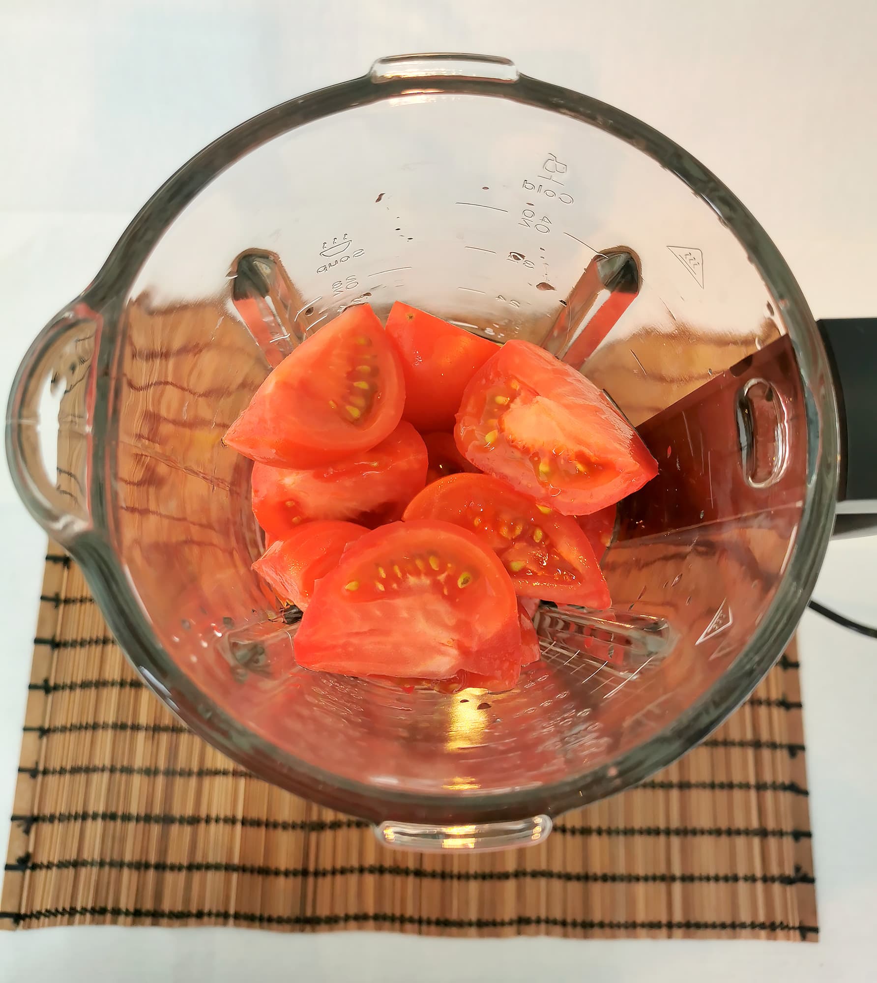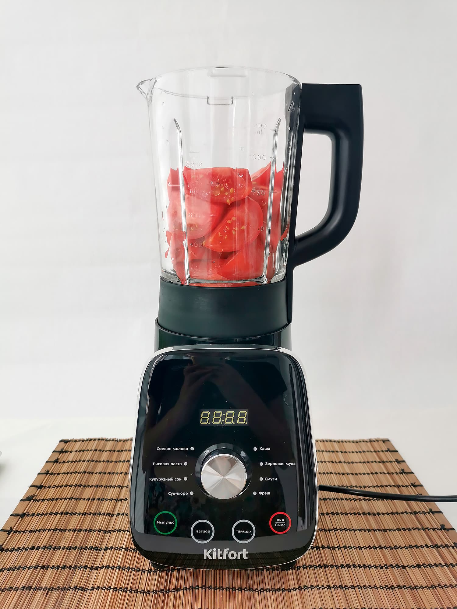 Мы начали со стандартного теста для блендера и взяли 500 г ароматных розовых томатов.