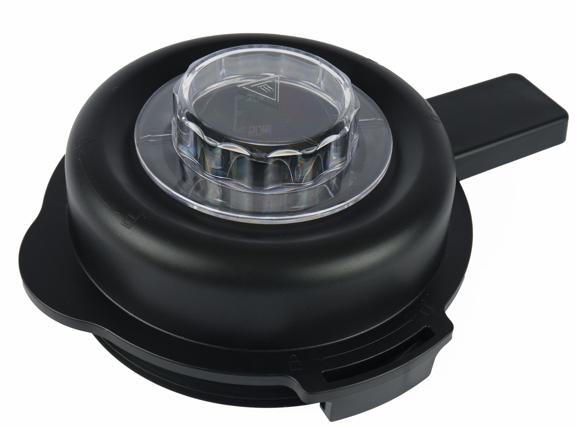 Чаша у блендера стеклянная, что добавляет ему романтики американских закусочных 60-х годов, в противовес этому черный моторный блок с красивой серебряной ручкой выбора режима и сенсорной панелью управления выглядит современно, матовая черная крышка качественно прорезинена, ну а мерный колпачок выполняет сразу 2 функции — собственно измеряет, а также запирает собой отверстие для добавления продуктов во время готовки.