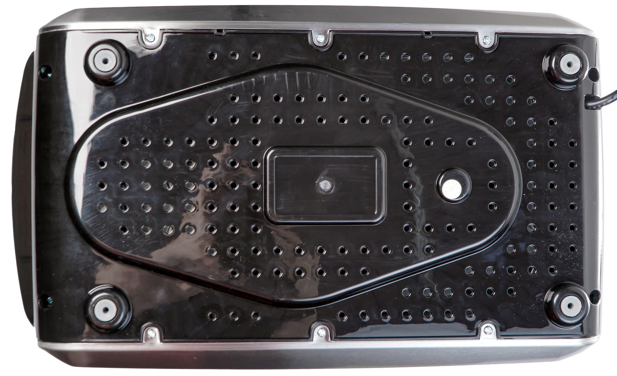 Хлебопечь стоит на четырех прорезиненных ножках. Снизу корпуса также располагаются вентиляционные отверстия.