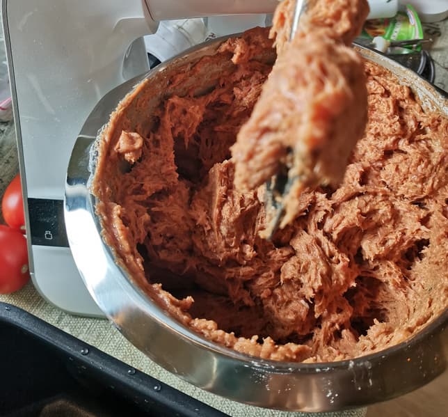 Затем вымесили это все в чаше миксера до однородного состояния.