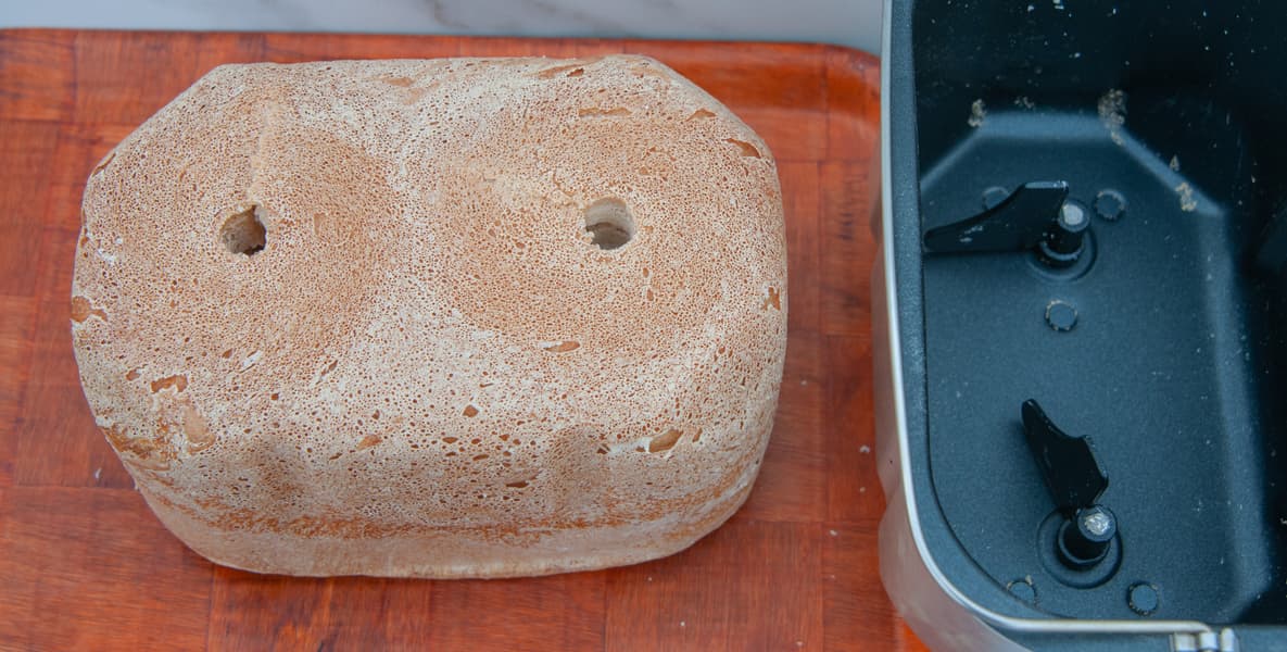 По окончании цикла хлебопечь издаст сигнал и будет подогревать готовый хлеб еще 1 час. Останется только достать буханку из емкости и подать на стол.