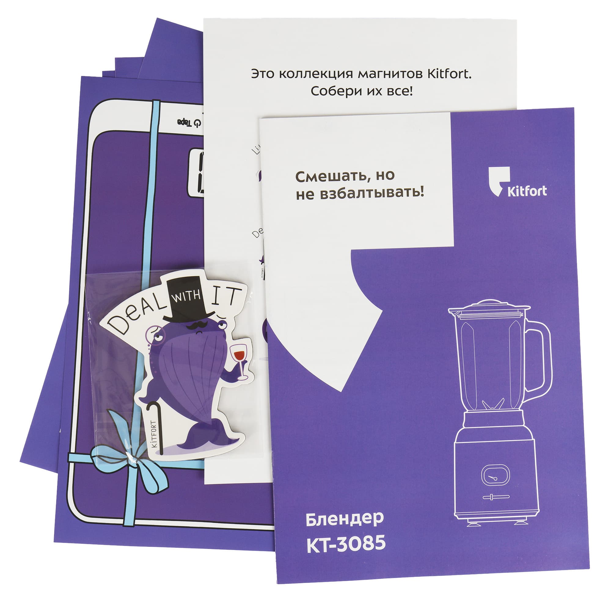 Блендер прибыл на тестирование в картонной коробке, оформленной в новой черно-фиолетовой гамме. На коробке присутствуют: схематичное изображение прибора, а также основные характеристики и техническая информация. В качестве защиты от ударов в процессе транспортировки внутри коробки блендер упакован в пенопластовые вставки. Коробка выглядит надежной, но ручками для переноски она не оснащена.