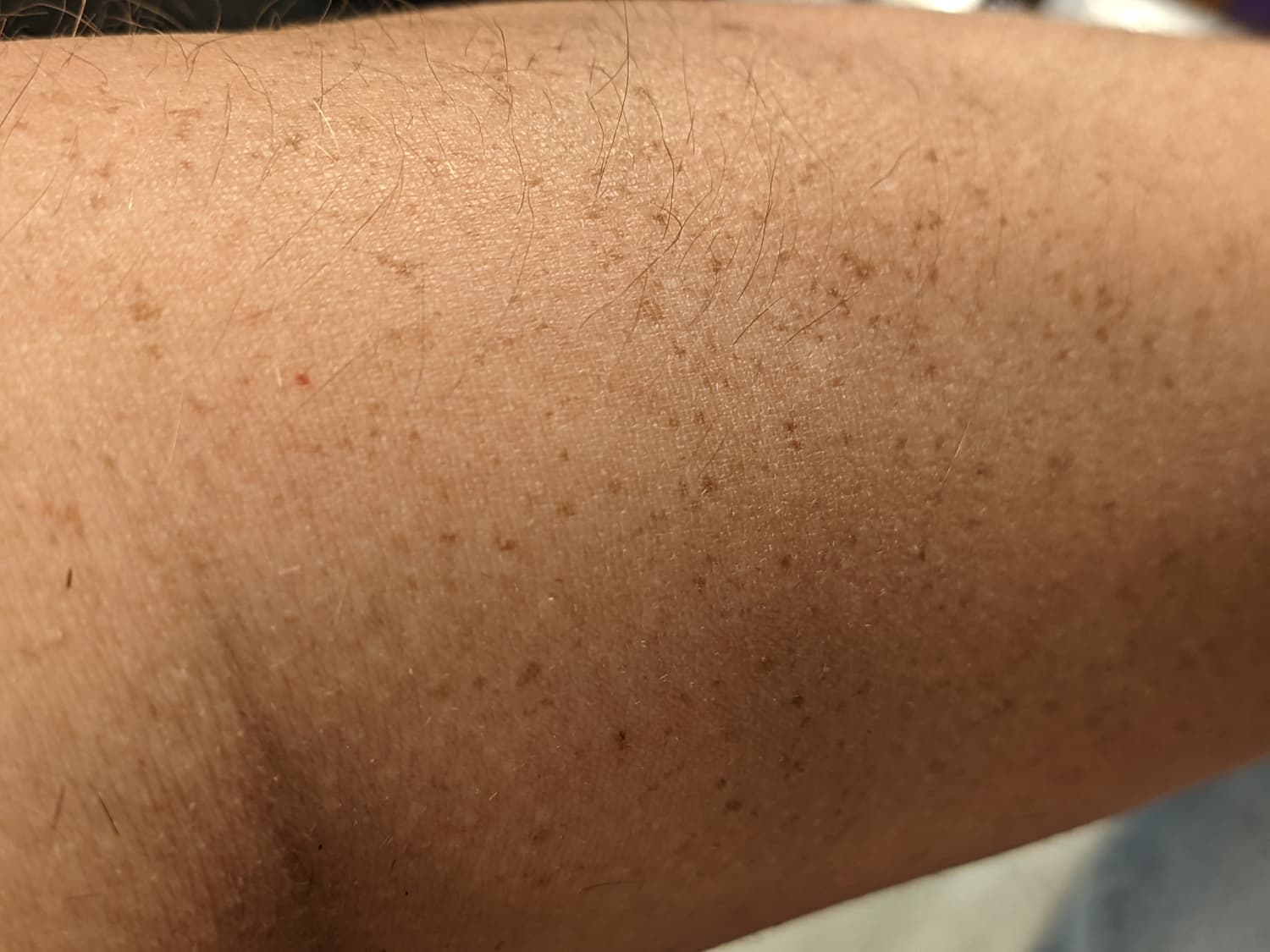 А вот не слишком густые волосы на руках удалить у нас получилось (см. нижнюю часть руки).