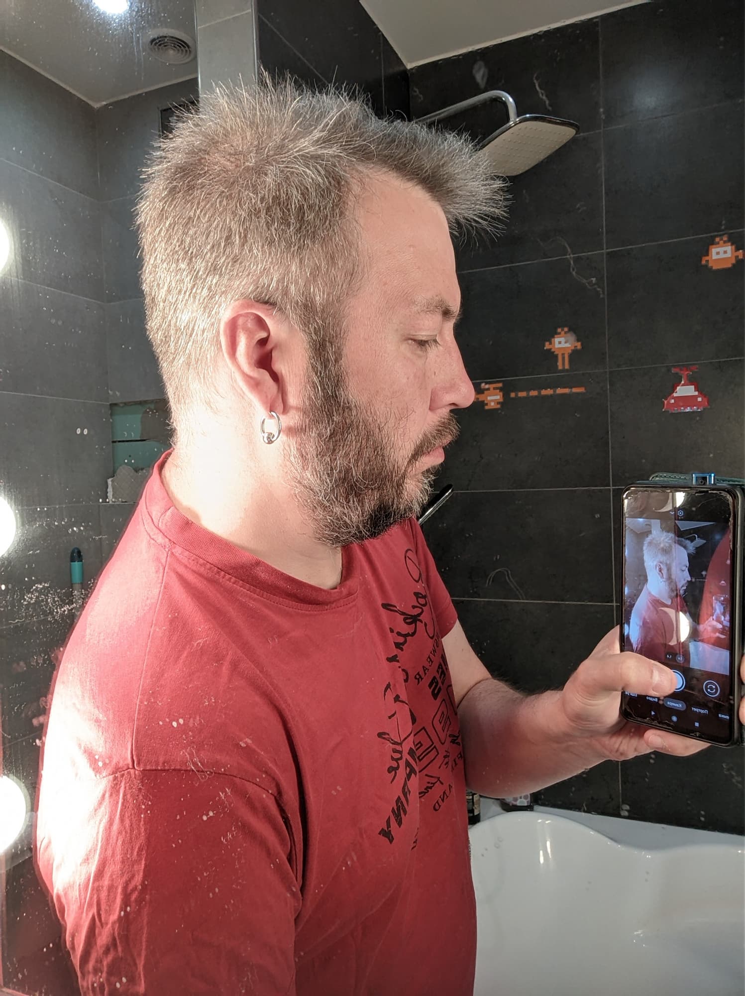 В принципе, опыт оказался примерно тем же, что и при насадке 2 мм. Волосы среза́лись довольно бодро, однако время от времени триммер их довольно больно дергал. Щеки оказались пострижены хорошо, борода и шея — чуть похуже.
