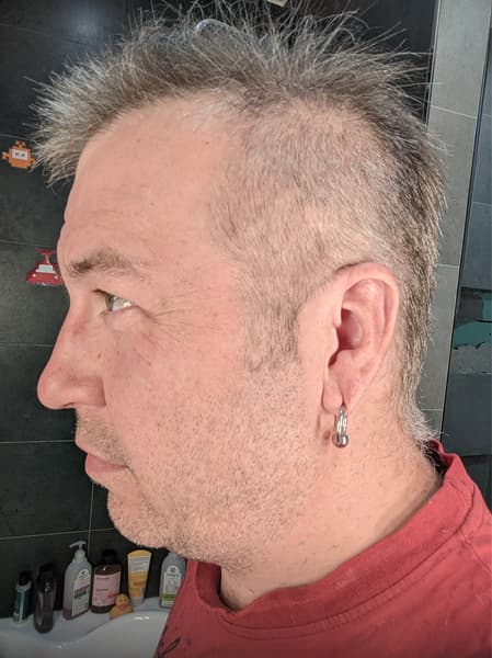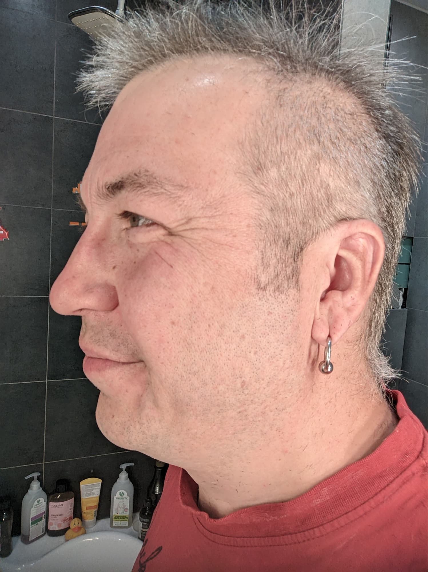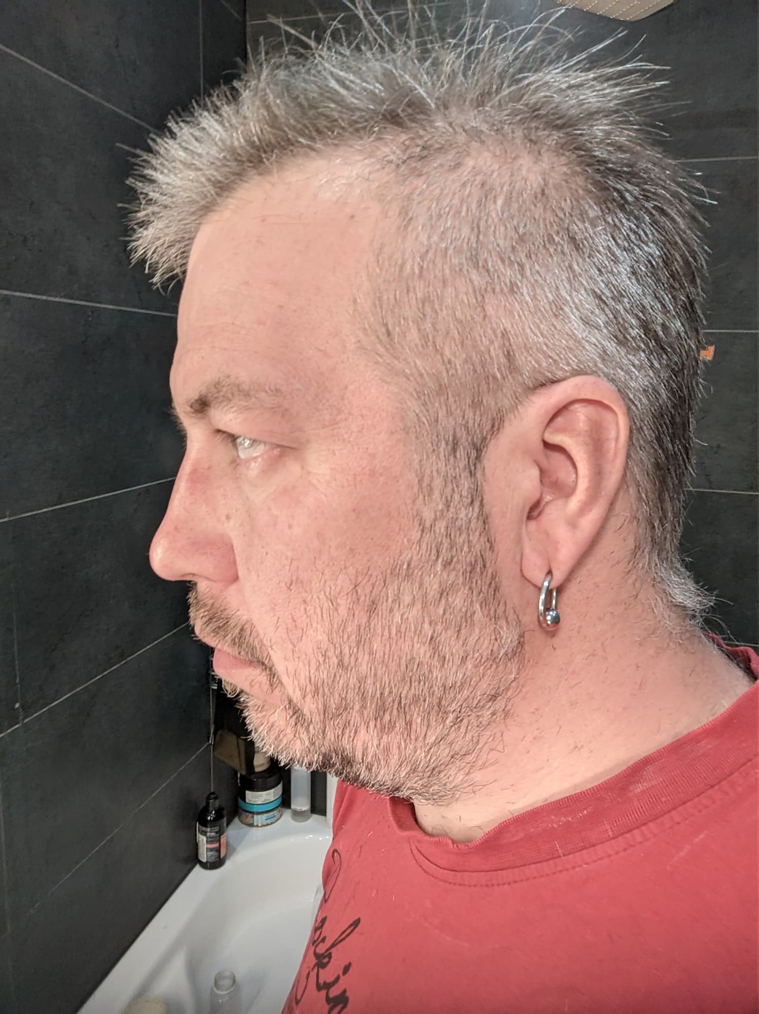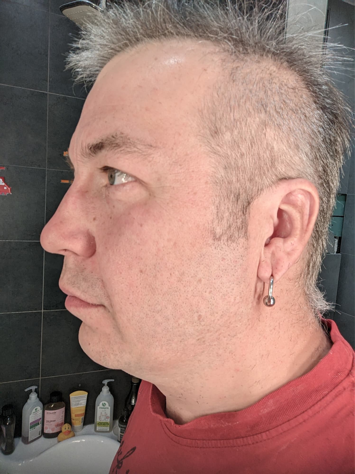Получилось довольно аккуратно. Осталось «отловить» отдельные волоски. Плавного перехода (как в парикмахерских) с помощью нашей бритвы, конечно, сделать не получится. Поэтому стричься нужно аккуратно, тщательно контролируя процесс.