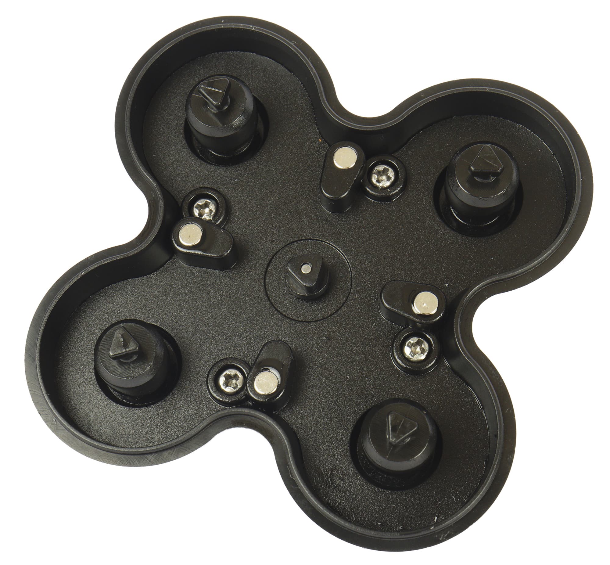 Вращающий момент передается ножам с помощью пластиковых штырьков, которые легко наклоняются в любую сторону. Центральный штырек зафиксирован жестко и не отклоняется от своей оси.