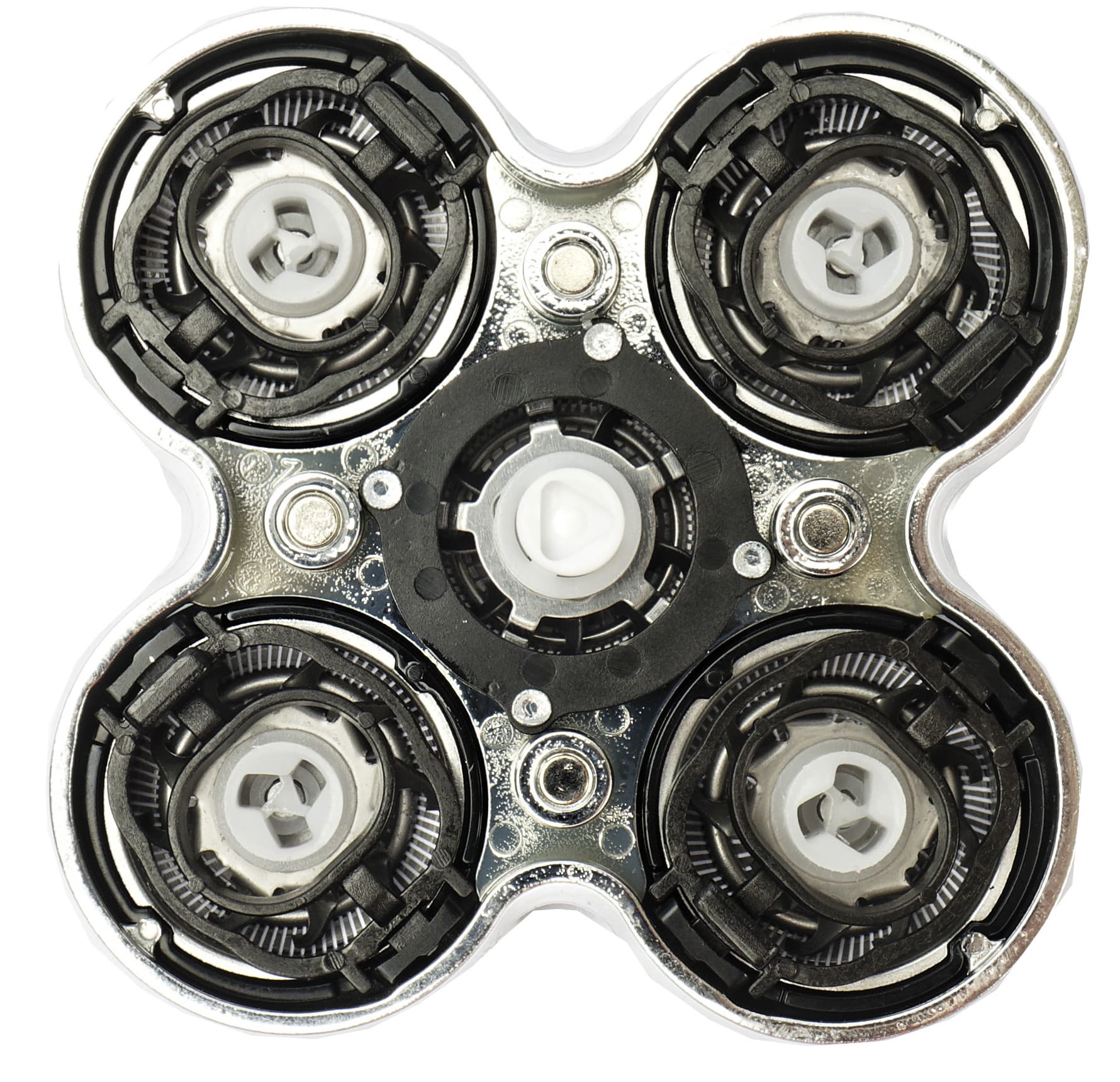 Подвижная бритвенная головка оснащена пятью роторными ножами. Центральный из них жестко зафиксирован, а четыре внешних плавают, то есть подстраиваются под контуры лица.