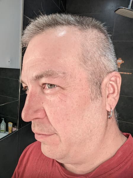 Как мы видим, стрижет наша бритва в целом довольно аккуратно. Конечно, зона около ушей требует дополнительной обработки, однако в целом работа триммера нам понравилась. Ничего не заедает, триммер не дергает волосы, стрижет легко, с первого прохода.
