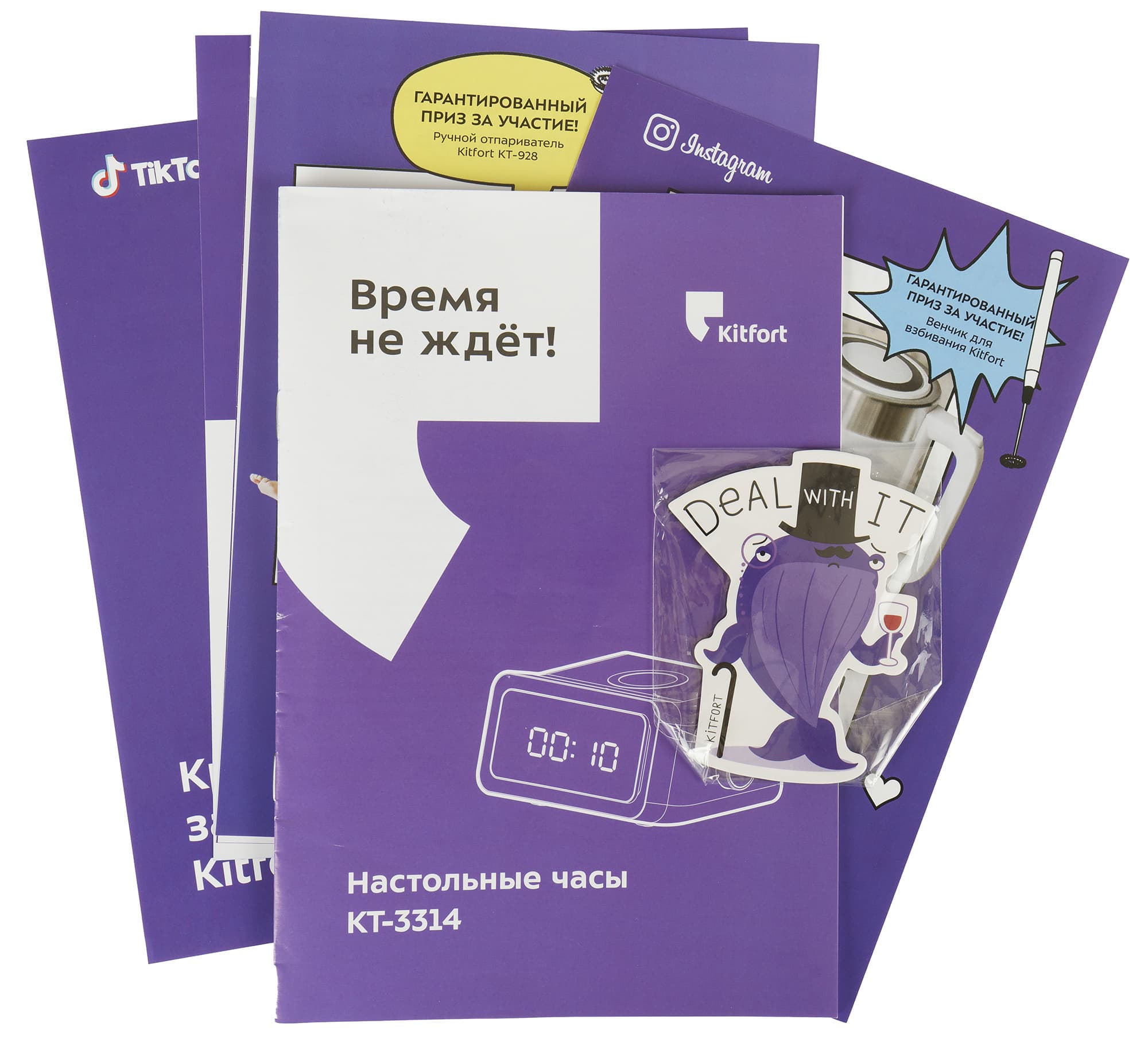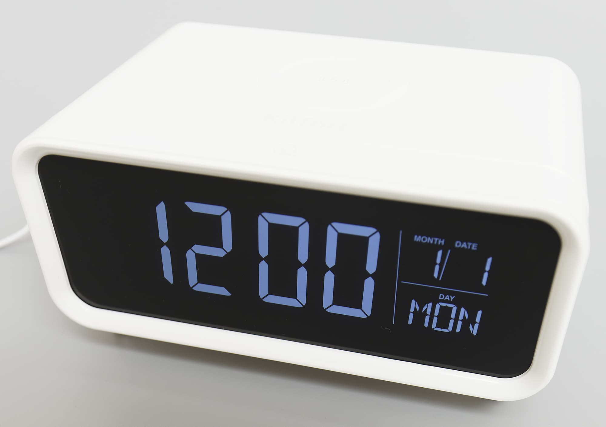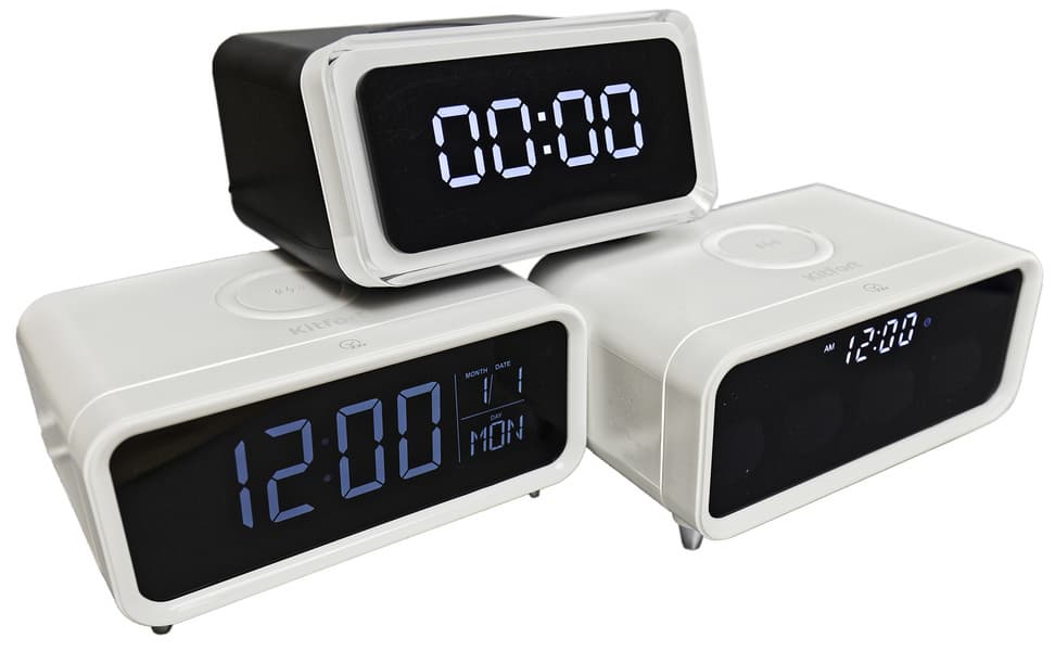 Начнем с настольных часов Kitfort KT-3308. Этот небольшой и легкий прибор позволит узнать время, а также вовремя разбудит владельца и зарядит телефон благодаря наличию встроенной беспроводной зарядки.