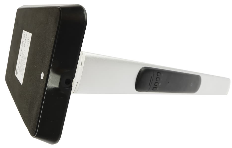 На задней стороне стойки расположена панель настройки часов, термометра и будильника. Сенсором со схематическим изображением солнца регулируется яркость дисплеев (доступны три режима подсветки), а четырьмя механическими кнопками устанавливается текущее время, дата, время срабатывания будильника, формат отображения времени (12- и 24-часовой) и единицы измерения температуры — градусы Цельсия или Фаренгейта.