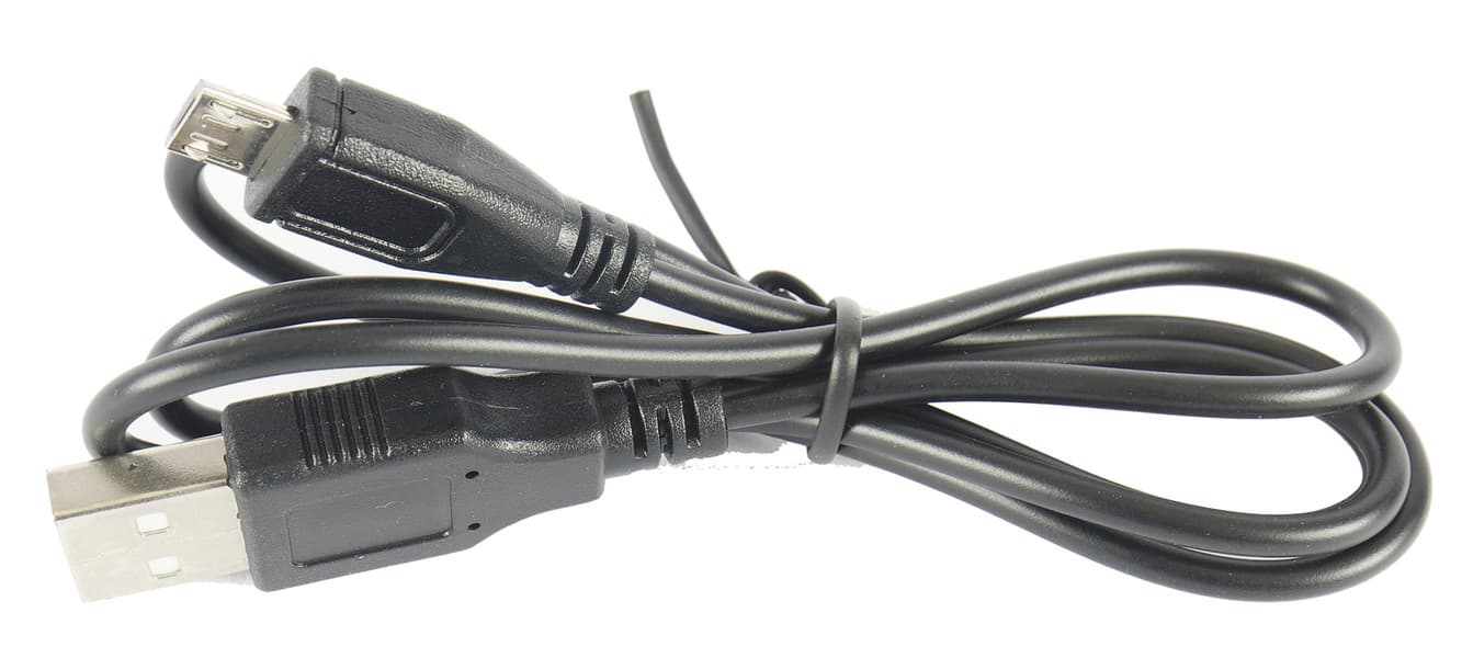 К устройству полагается кабель Micro-USB. Адаптера в комплекте нет, поэтому заряжать прибор придется от компьютера или через собственный адаптер.