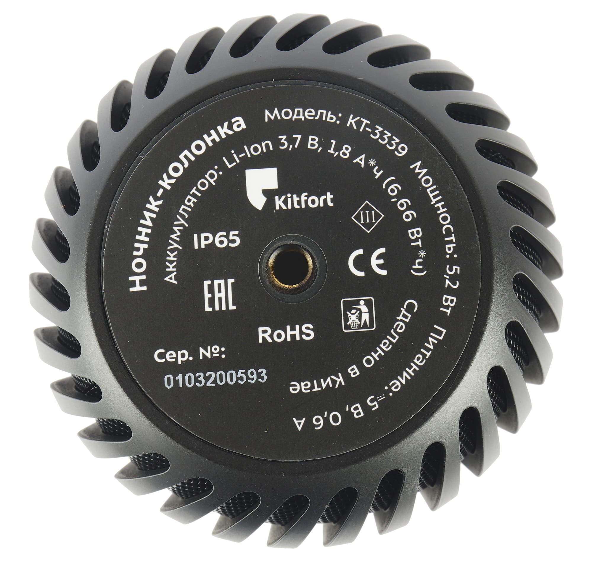 Заряд держится достаточно долго — в режиме колонки-ночника по 7 часов у КТ-3338 и КТ-3339 и 3,5 часа у КТ-3337. А в режиме ночника у всех моделей время работы до 25—37 часов.
