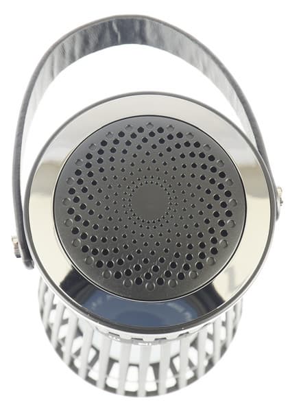 Первый ночник из подборки сразу же привлек наше внимание. Внешне он напоминает смесь крохотного газового обогревателя и лампады и от него совсем не ждешь возможностей звуковоспроизведения.