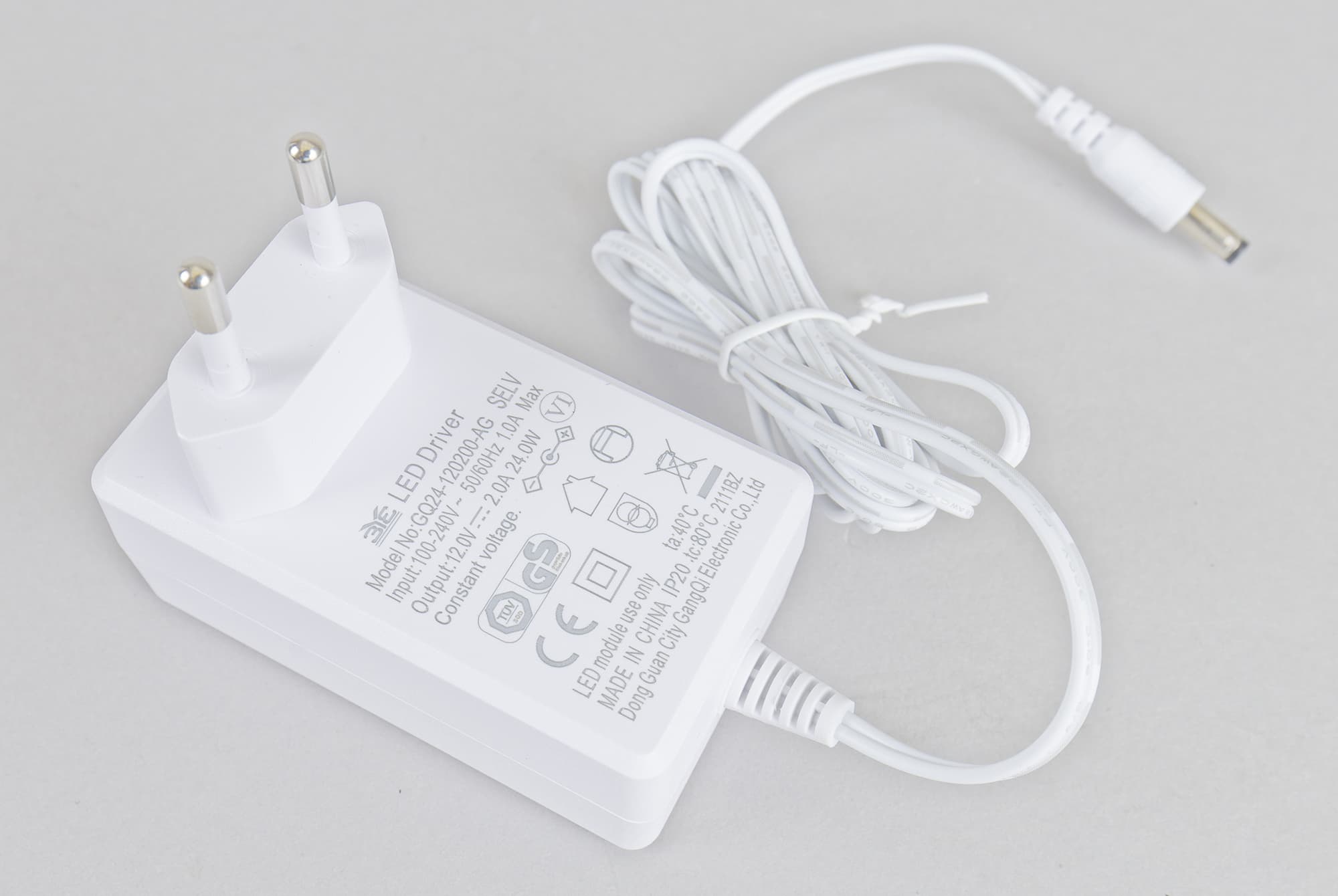 Внутри коробки находились светильник в собранном виде, упакованный в полиэтиленовый пакет, блок питания в отдельной коробочке, руководство по эксплуатации, рекламные материалы и коллекционный магнит. Содержимое внутри коробки было крепко зафиксировано пенопластовыми вкладками.